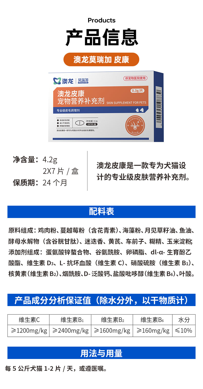 【澳龙】莫瑞加皮康专业皮毛宠物营养补充剂医院同款猫狗通用