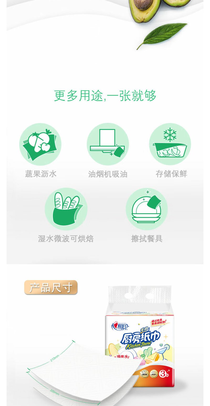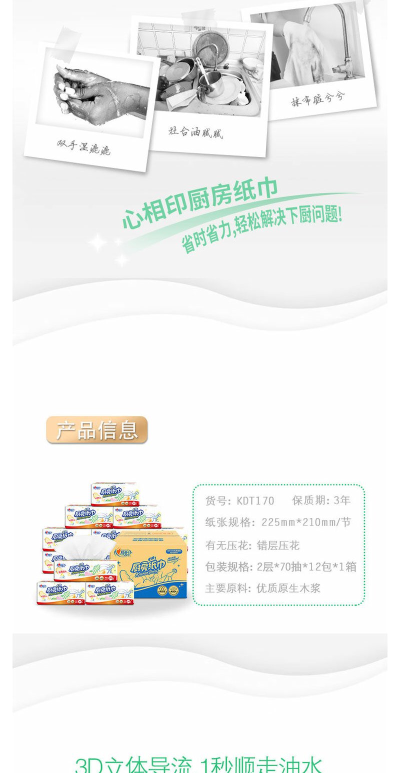心相印 厨房纸 厨房用纸吸油纸加厚 3包*4提(70抽/包) KDT170