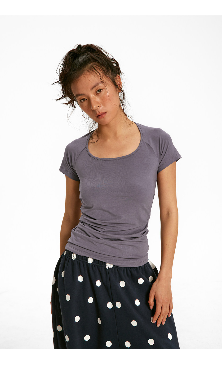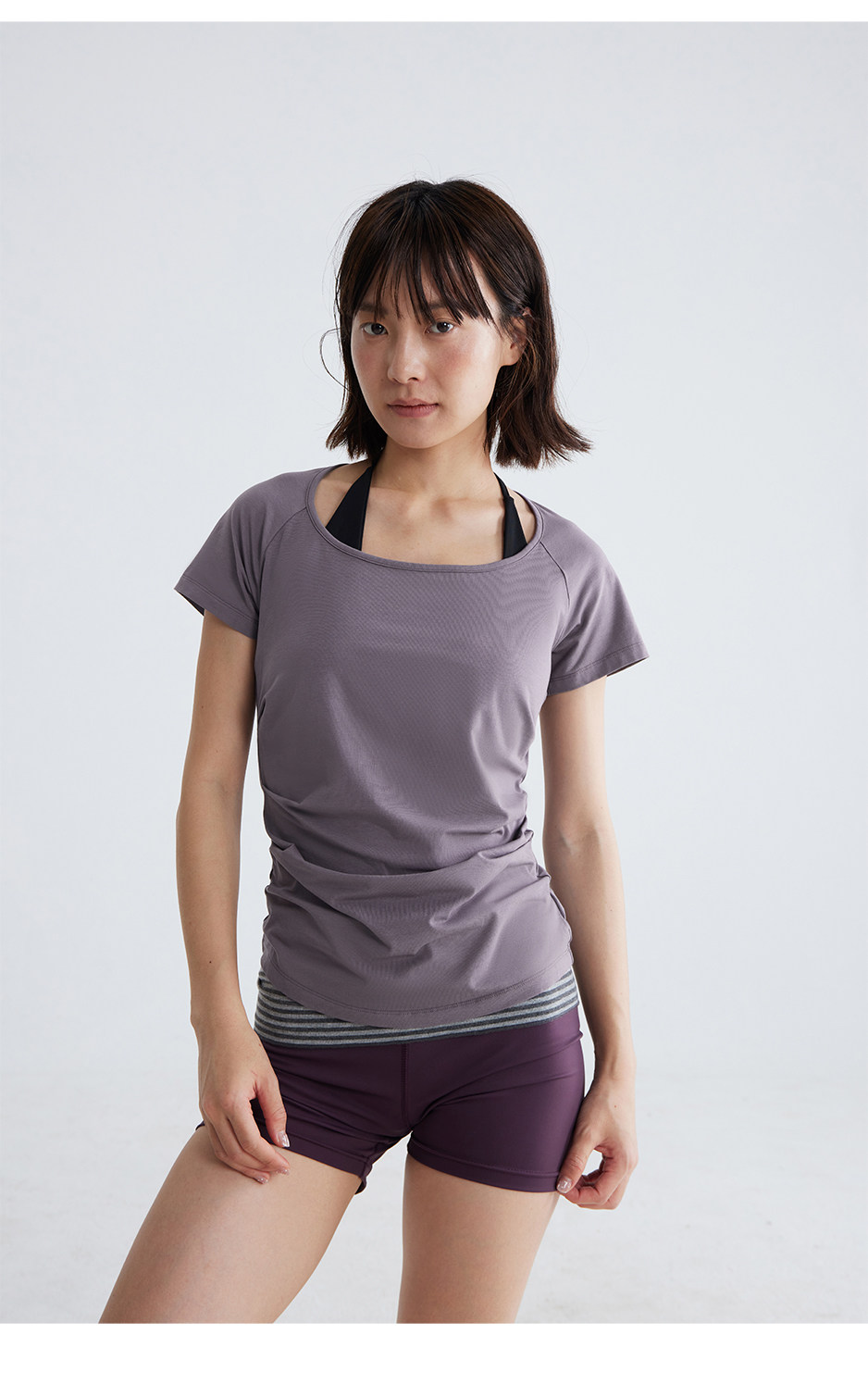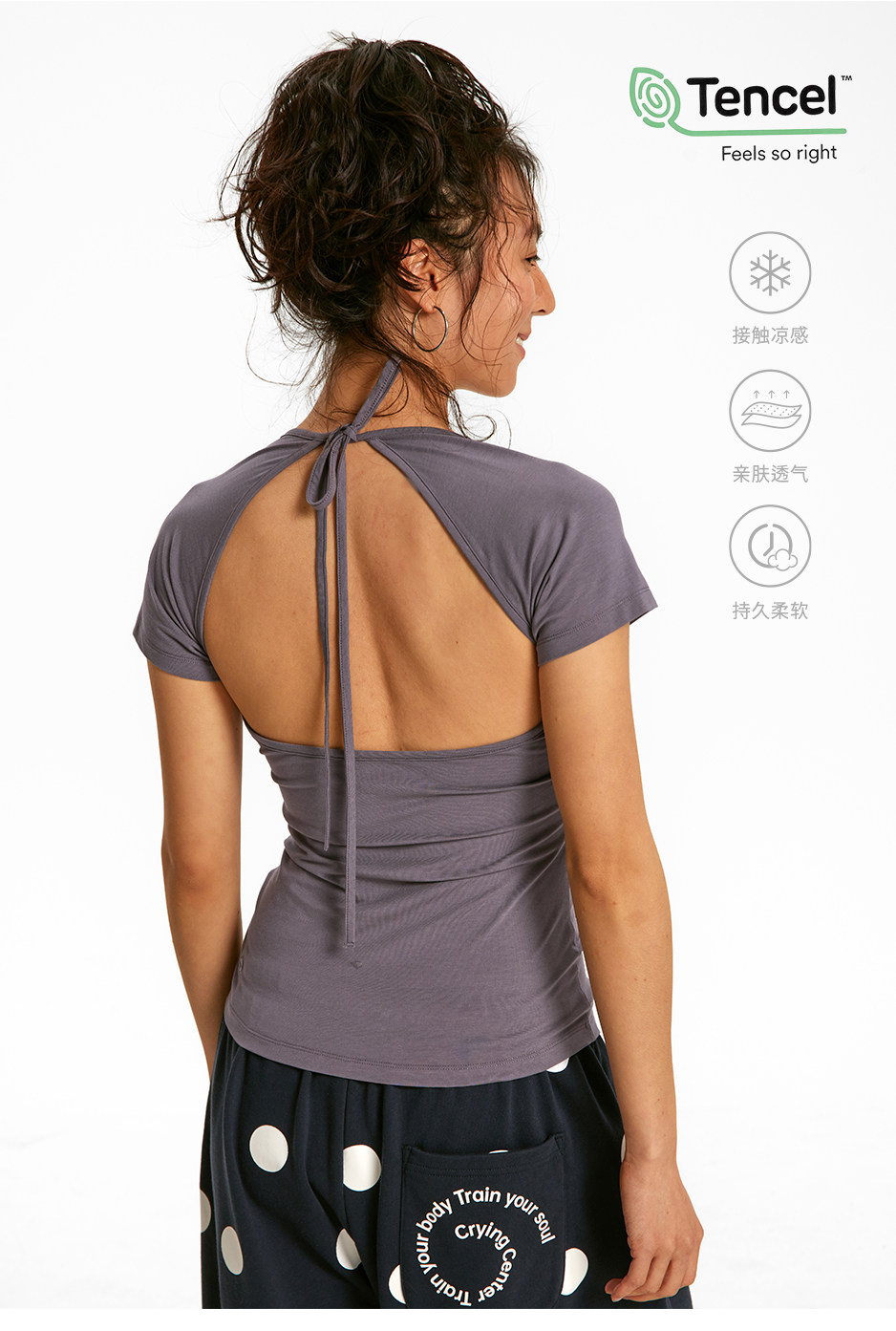 CryingCenter凉感兰精莫代尔绑带后背镂空收腰褶皱上衣休闲训练服
