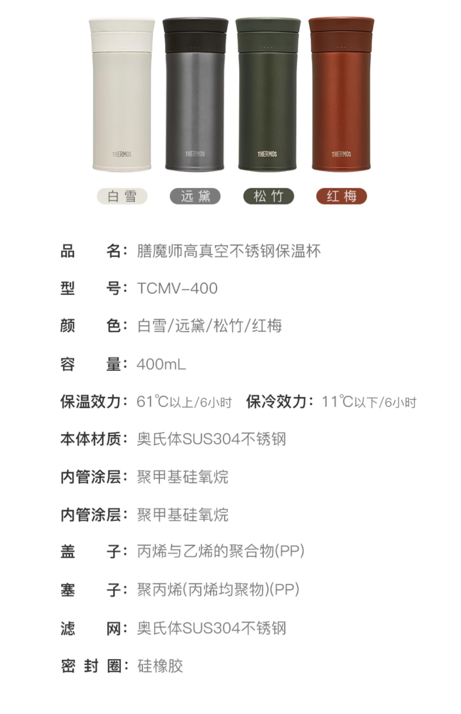 膳魔师保温杯保温杯便携商务泡茶杯550mlTCMV-550 LC RD