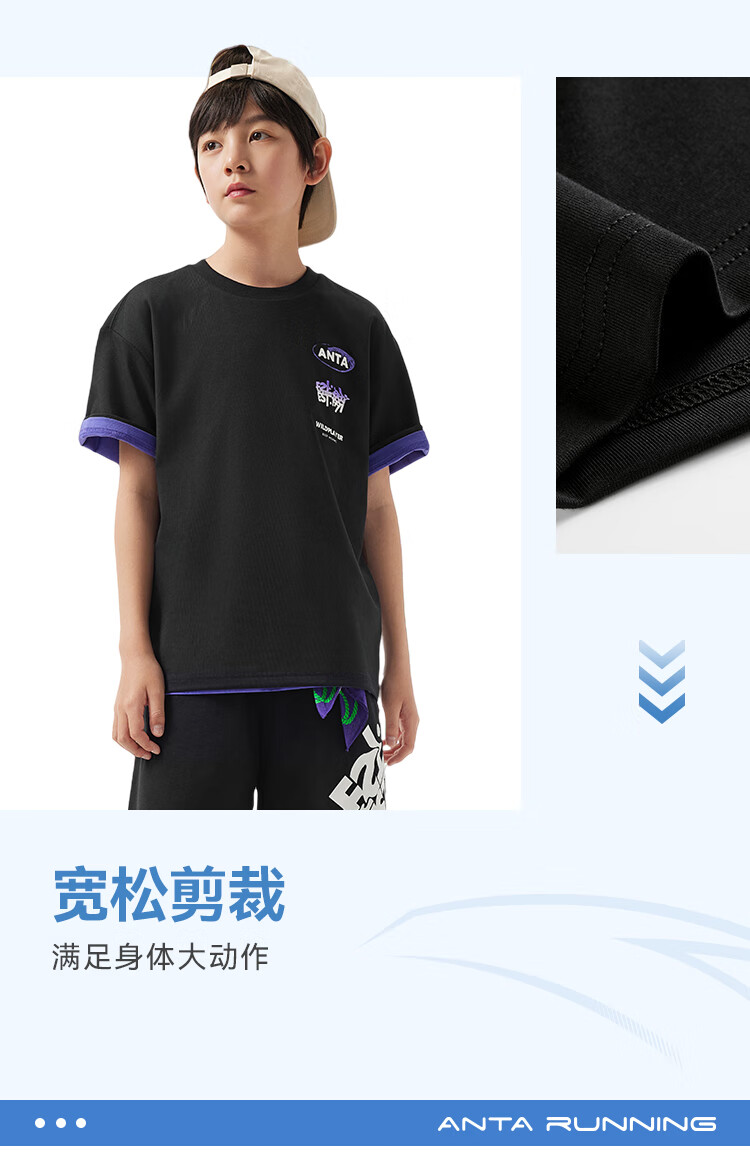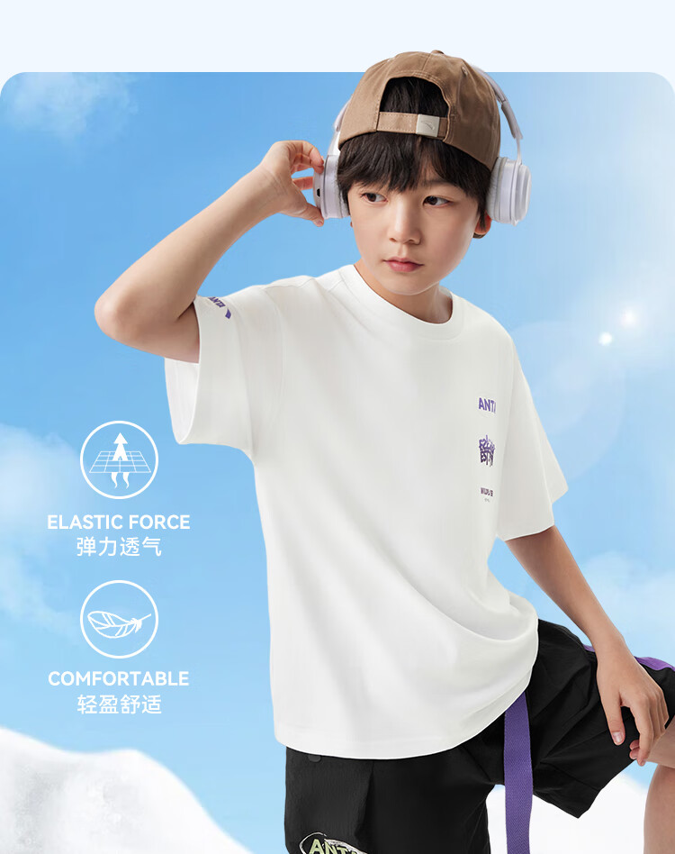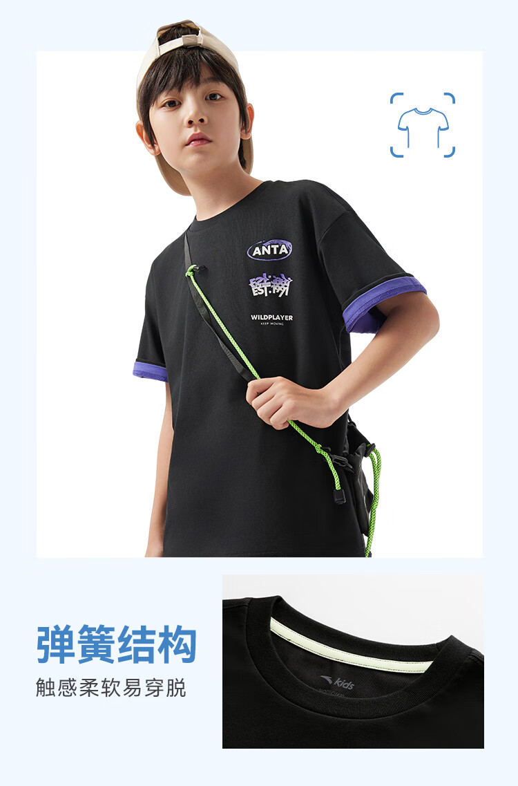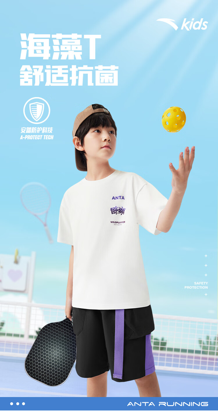 安踏儿童短T恤男大童针织短袖衫2025夏季柔软亲肤短袖352528105