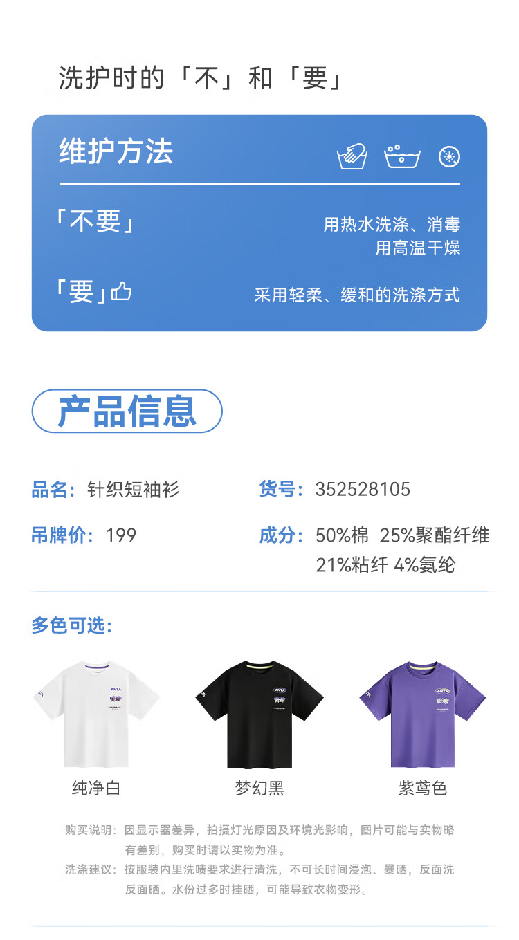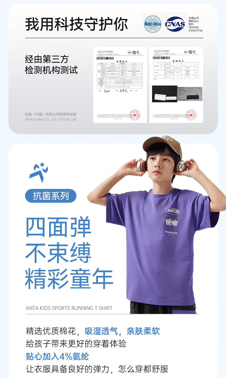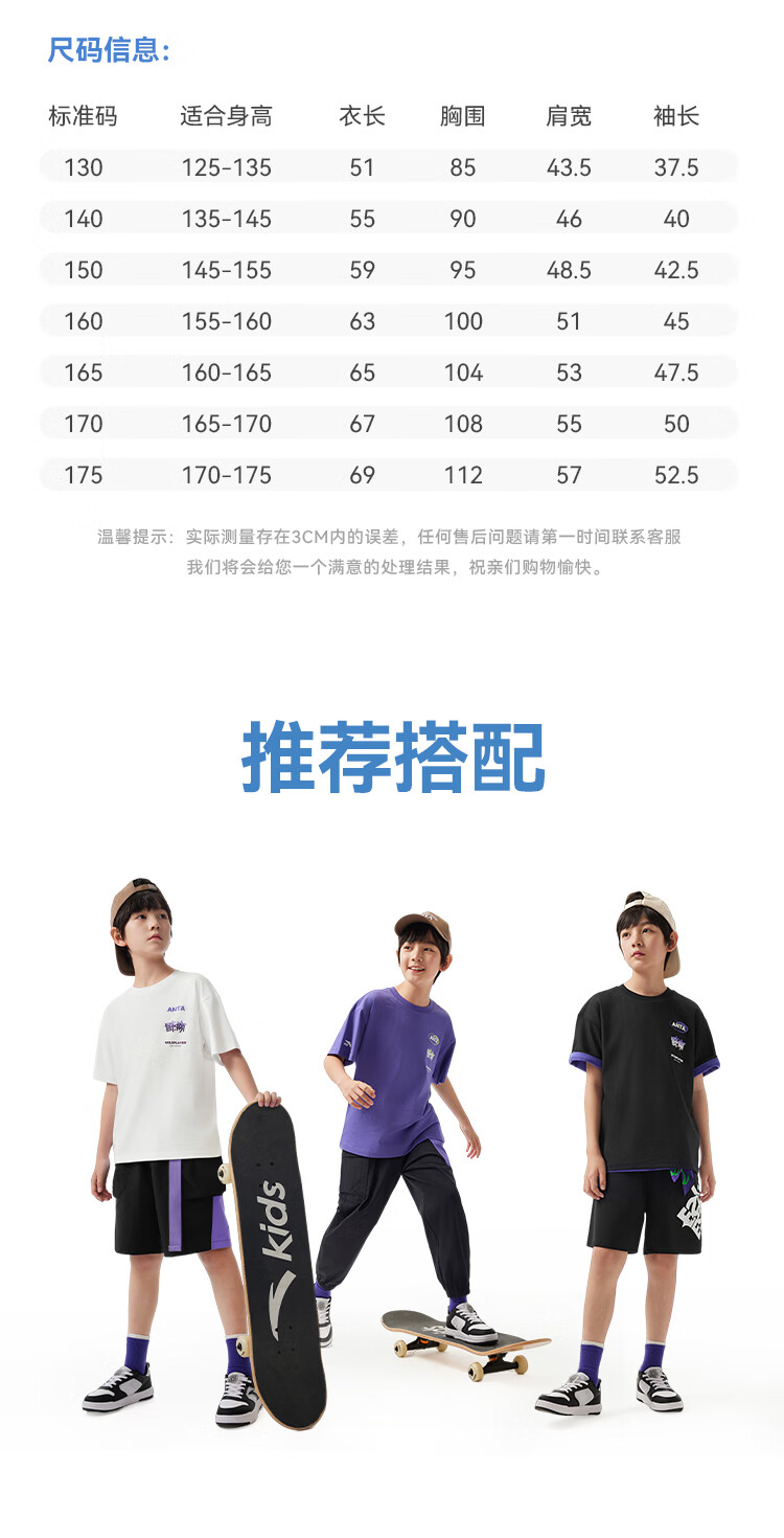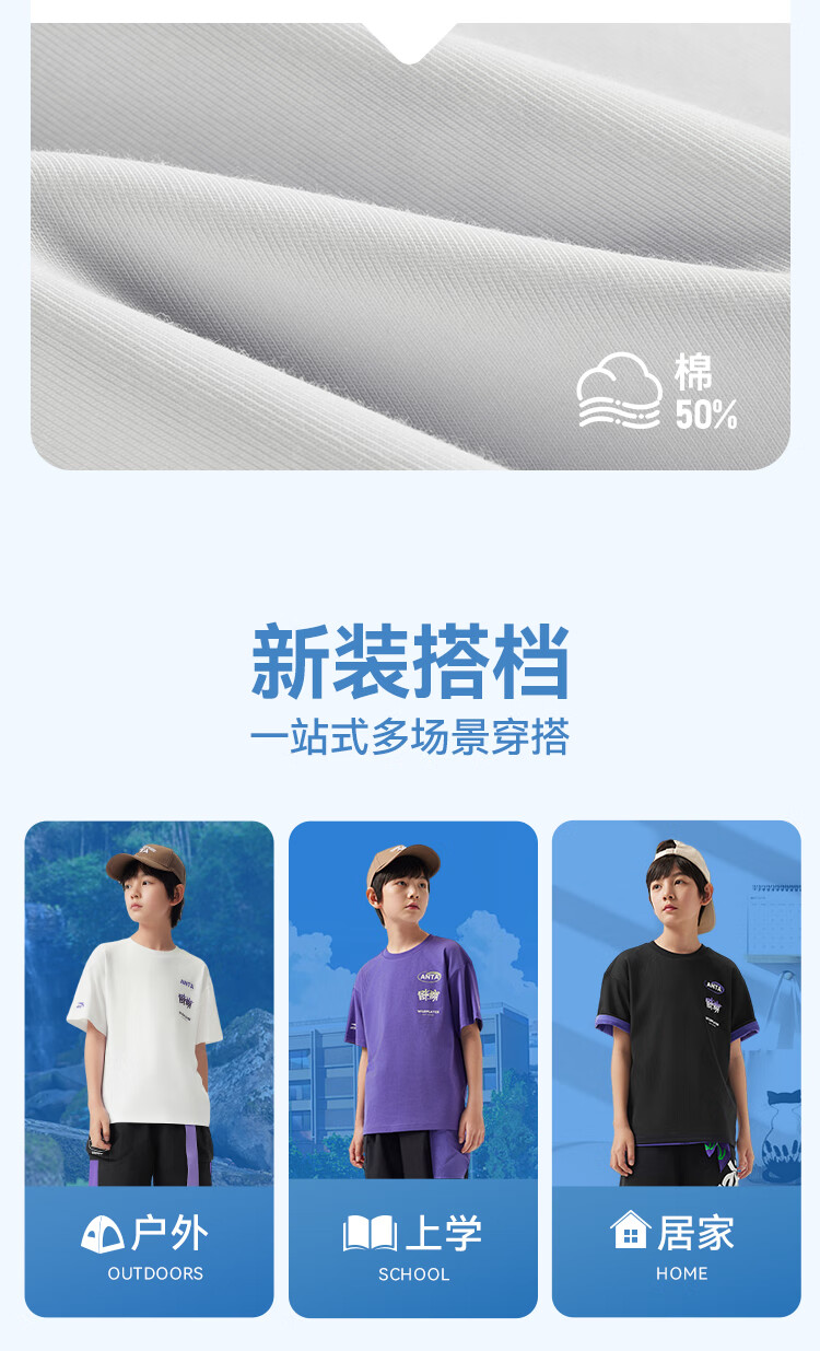 安踏儿童短T恤男大童针织短袖衫2025夏季柔软亲肤短袖352528105