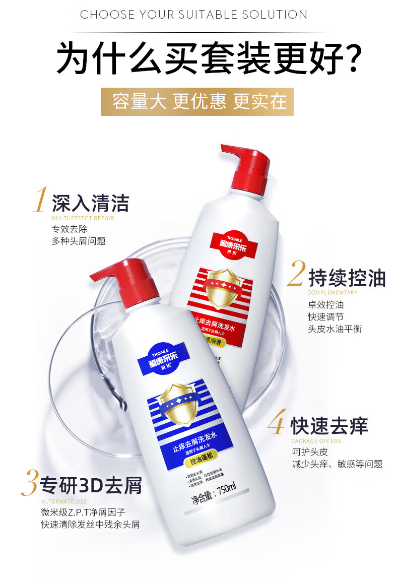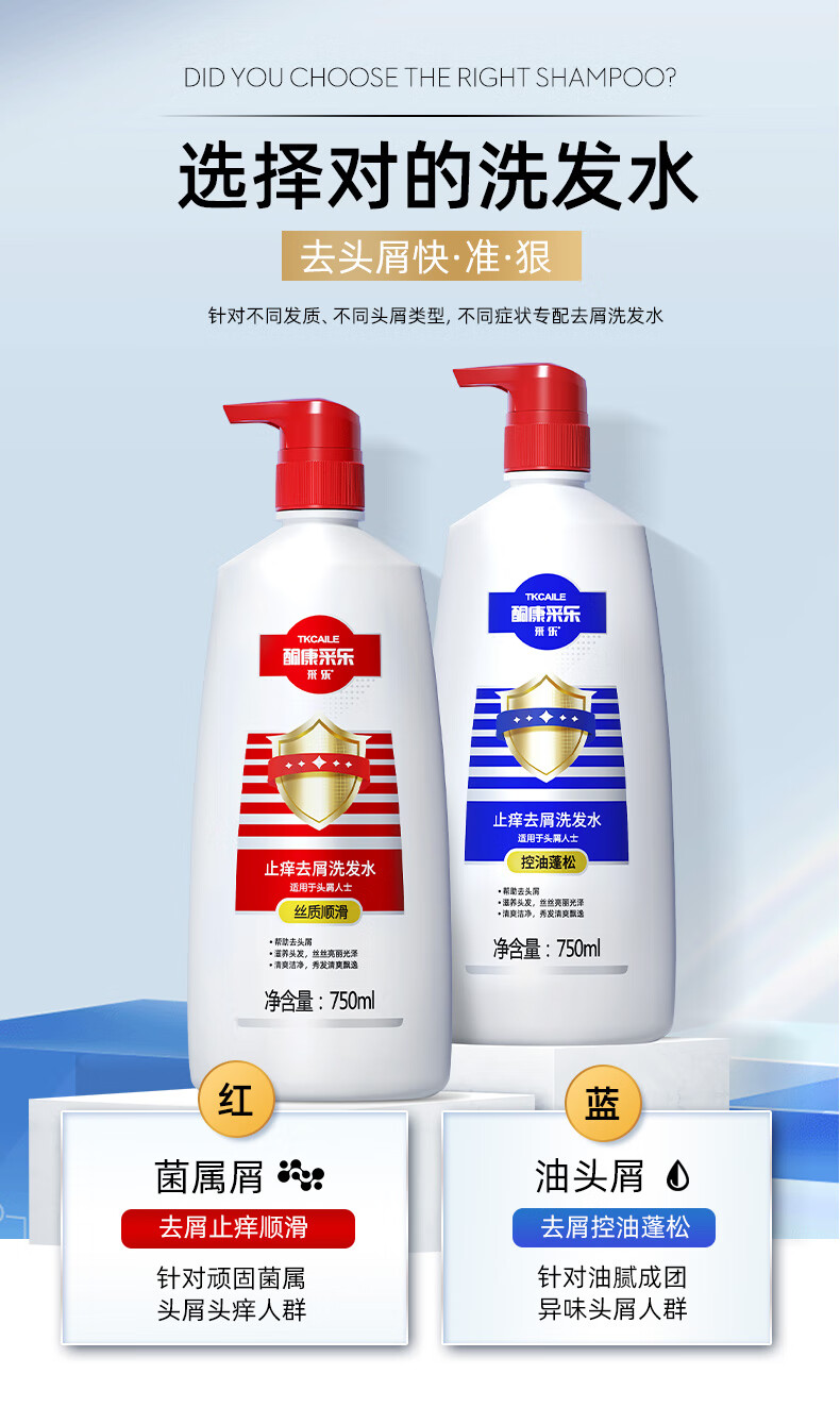酮康采乐 去屑洗发露组合【丝质顺滑+清爽洁净】750ml*2 CL17