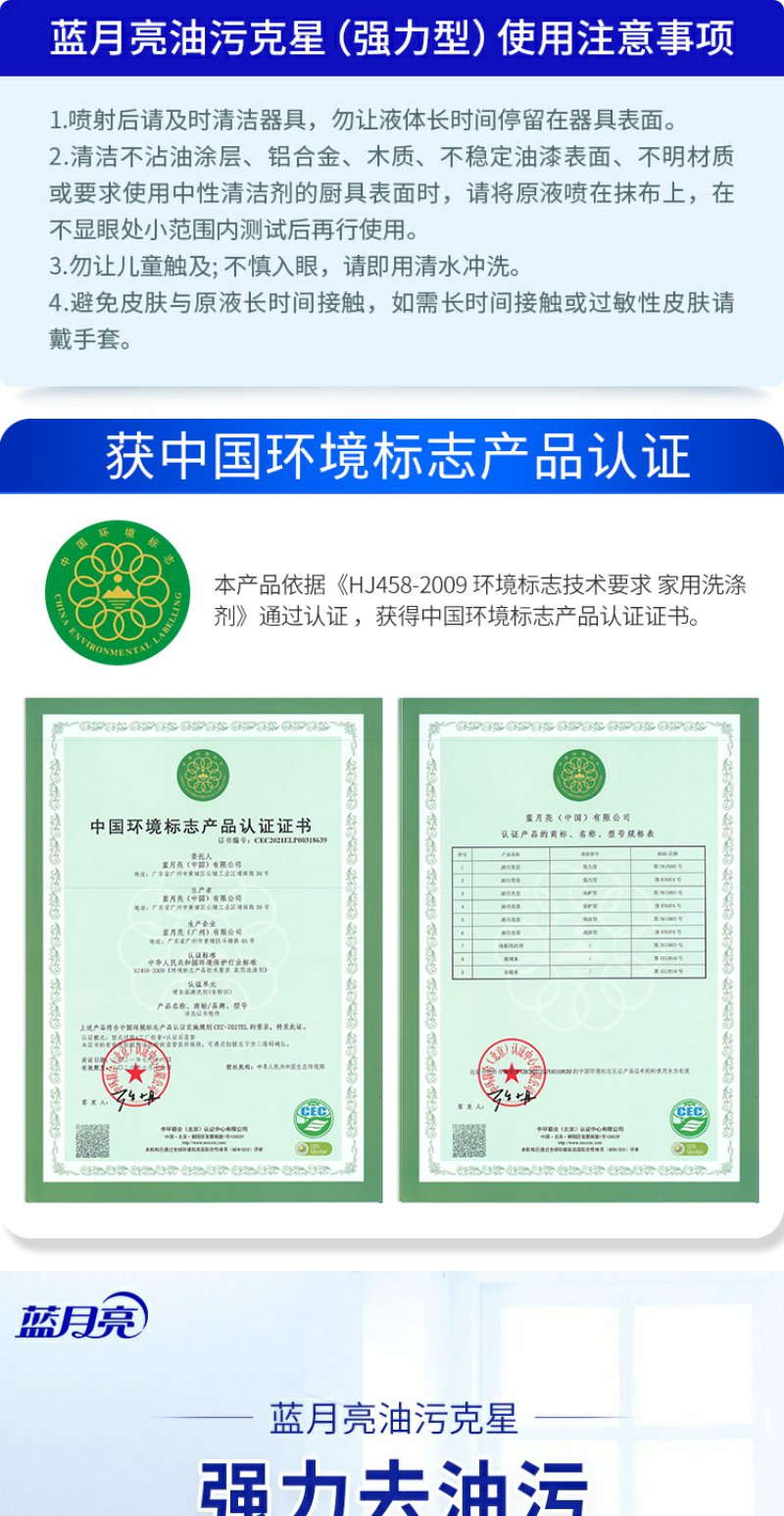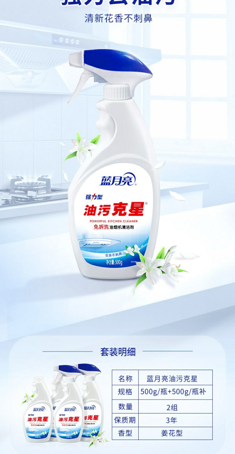 蓝月亮 强力型油污克星 (500G瓶+500G瓶补)×2