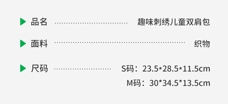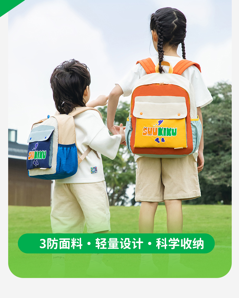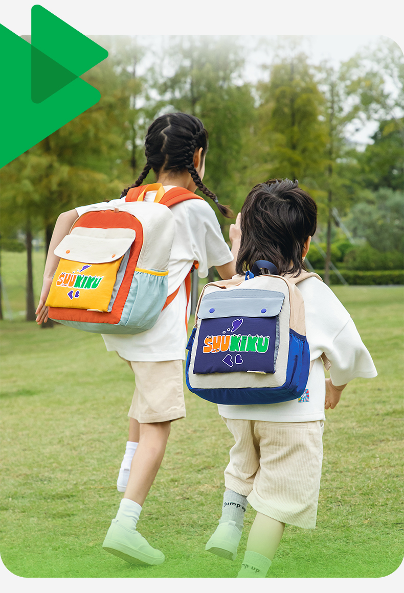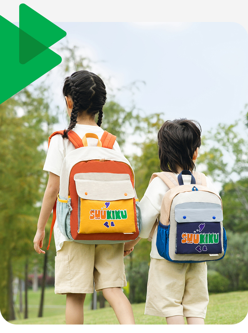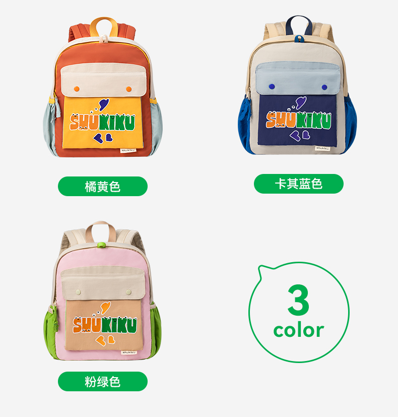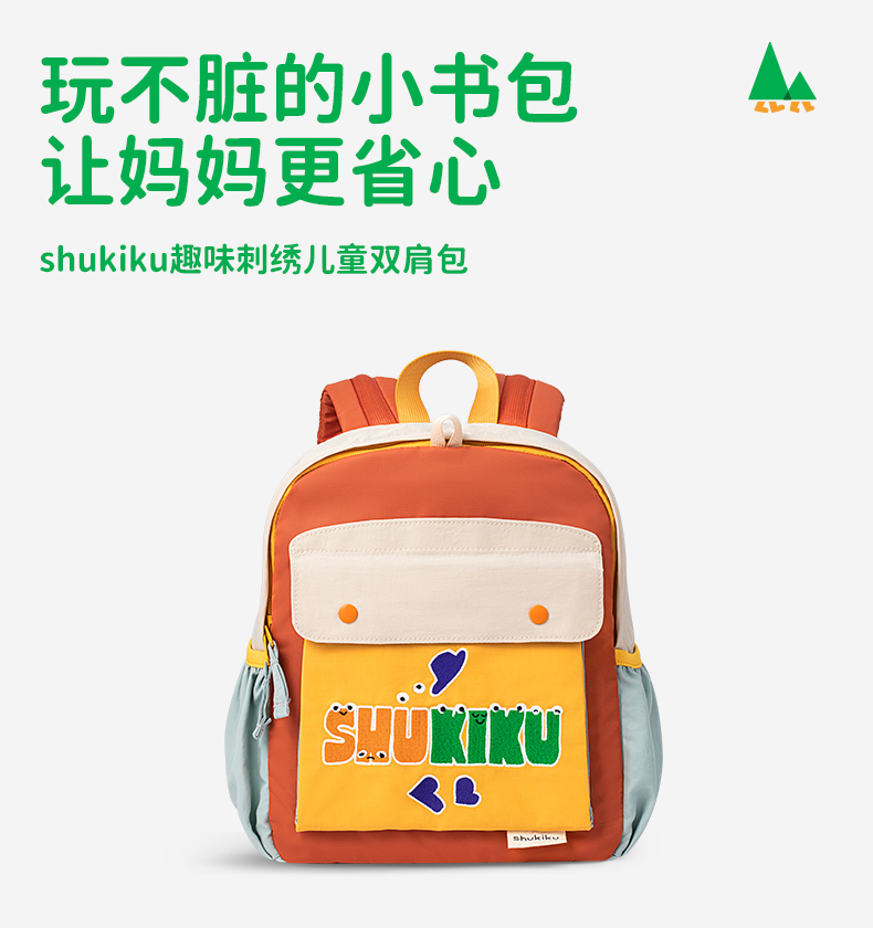 shukiku 趣味刺绣儿童双肩包 粉绿色 S