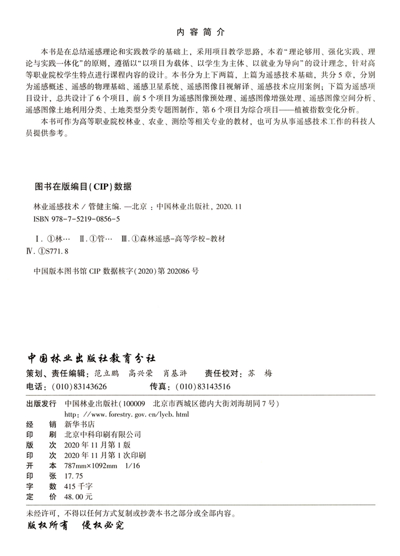 林业遥感技术(辽宁省高水平特色专业群校企合作开发系列教材) 管健 0856 中国林业出版社