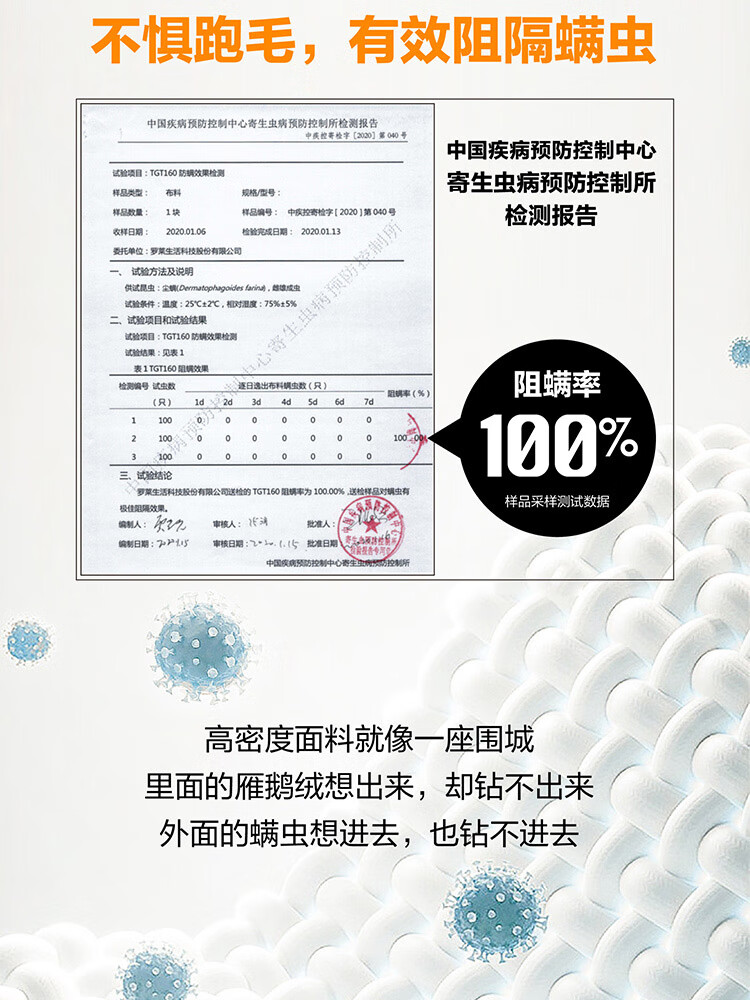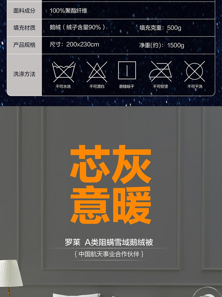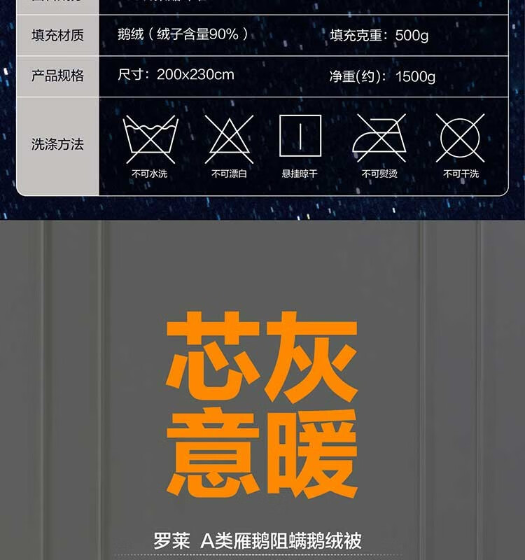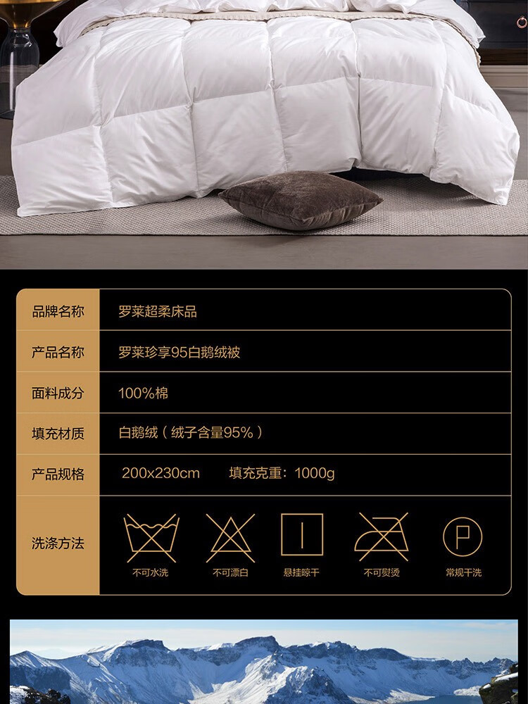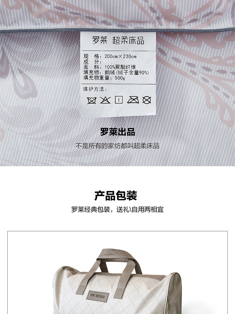 罗莱 A类阻螨雪域鹅绒被200*230cm