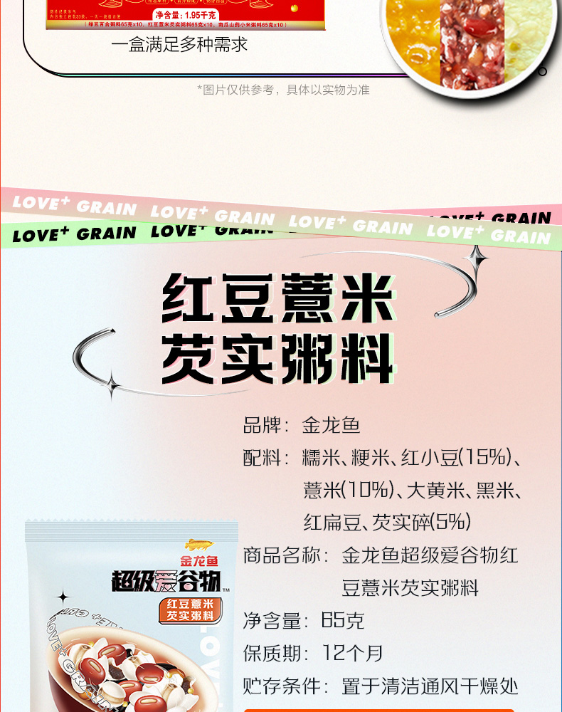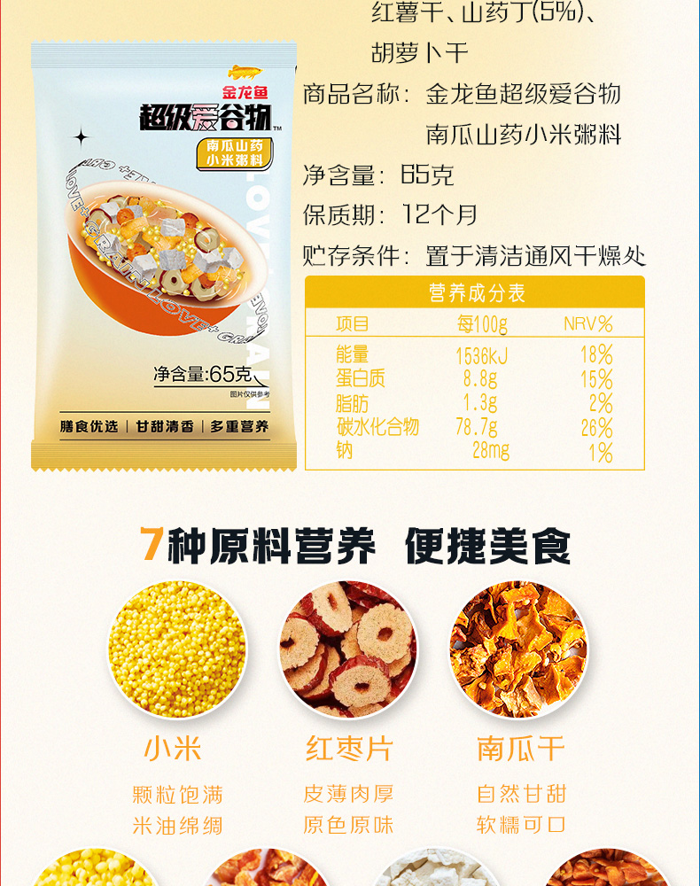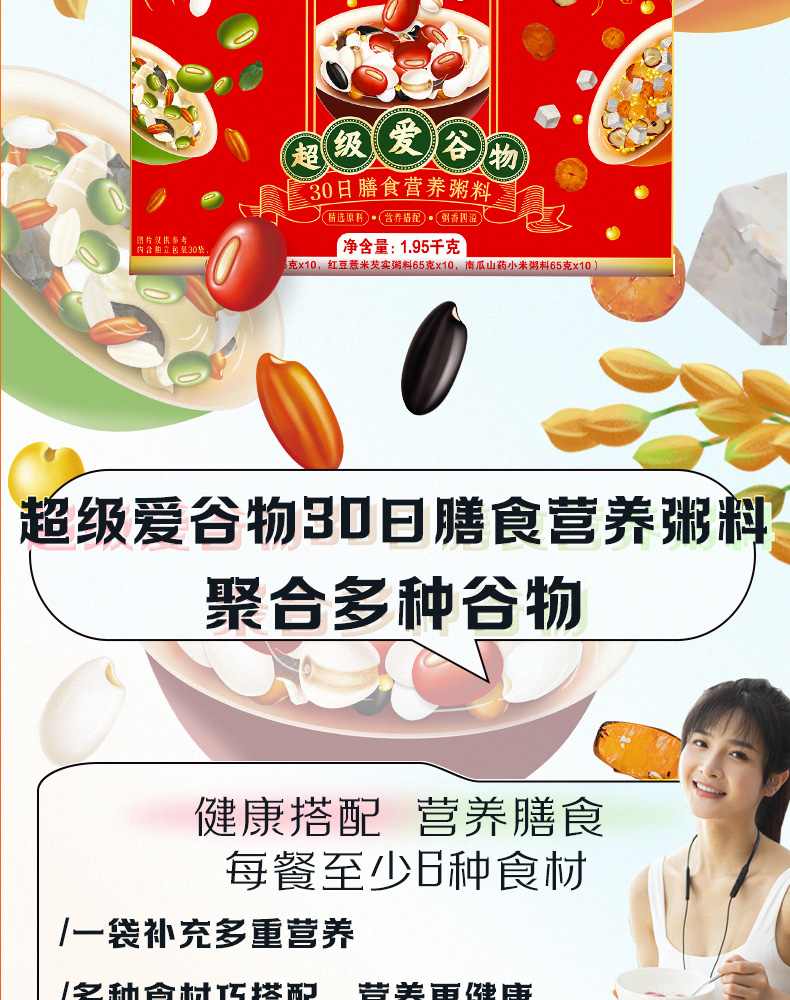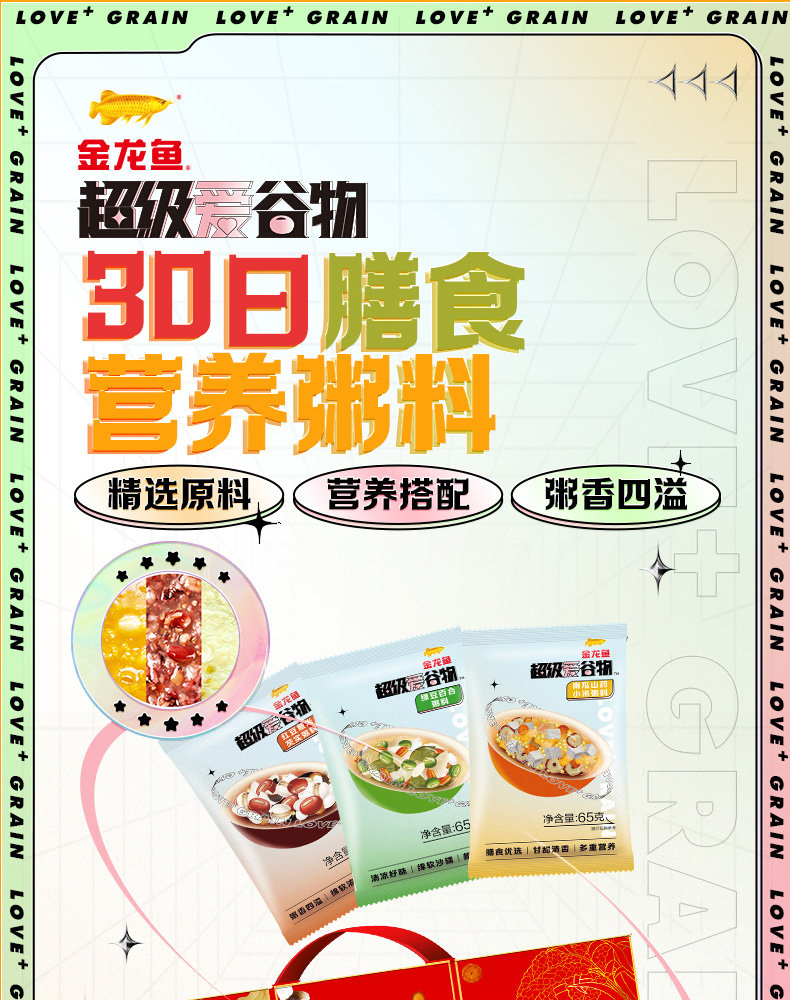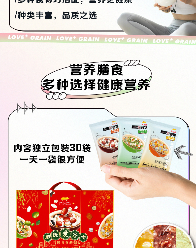 金龙鱼超级爱谷物30日膳食营养粥料1.95kg礼盒装(65g×30包)