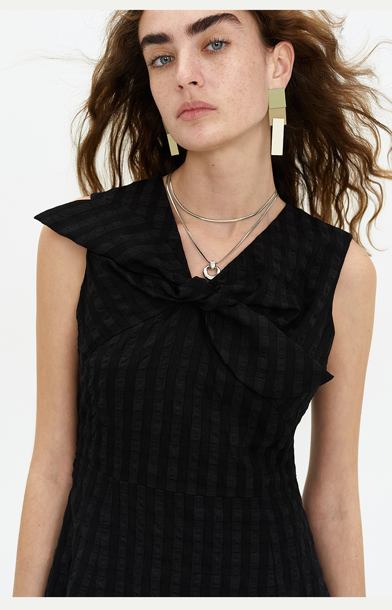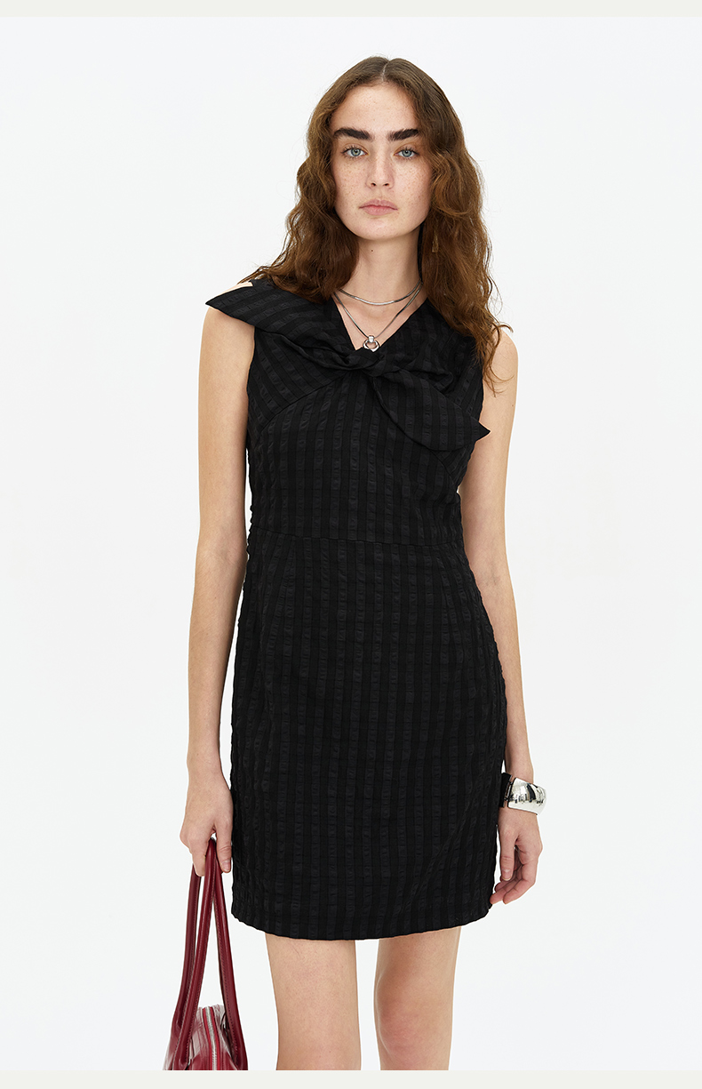 SELFWHO 石墨黑格色连衣裙2024新款夏季高端气质收腰茶歇法式裙子