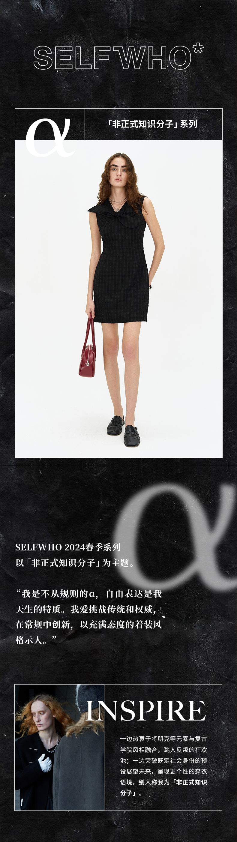 - SELFWHO——将街头文化融入高级成衣,以服装为载体,用廓形、解构设计和艺术意象探寻极致的生活方式。特立独行,知行合一,TO BE YOURSELF。