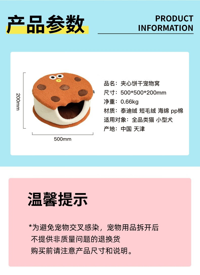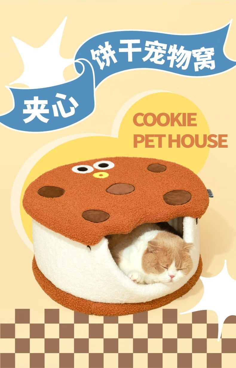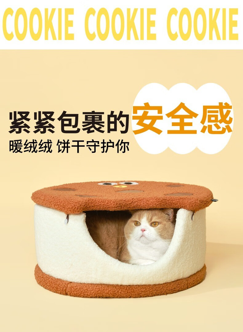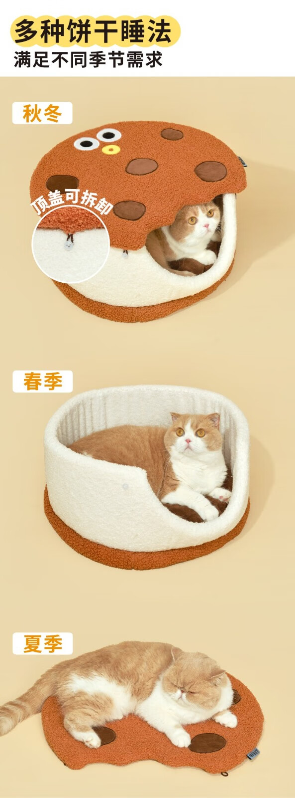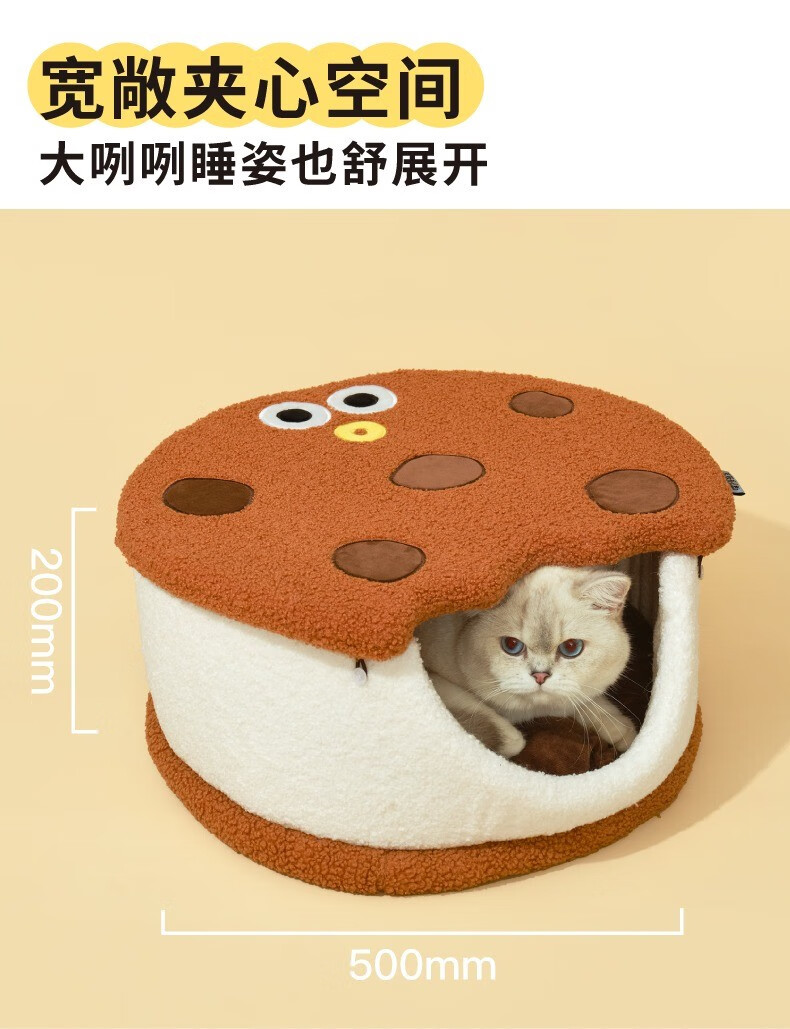 噗扑实验室 夹心饼干宠物猫窝全封闭狗窝冬季保暖可拆洗猫窝