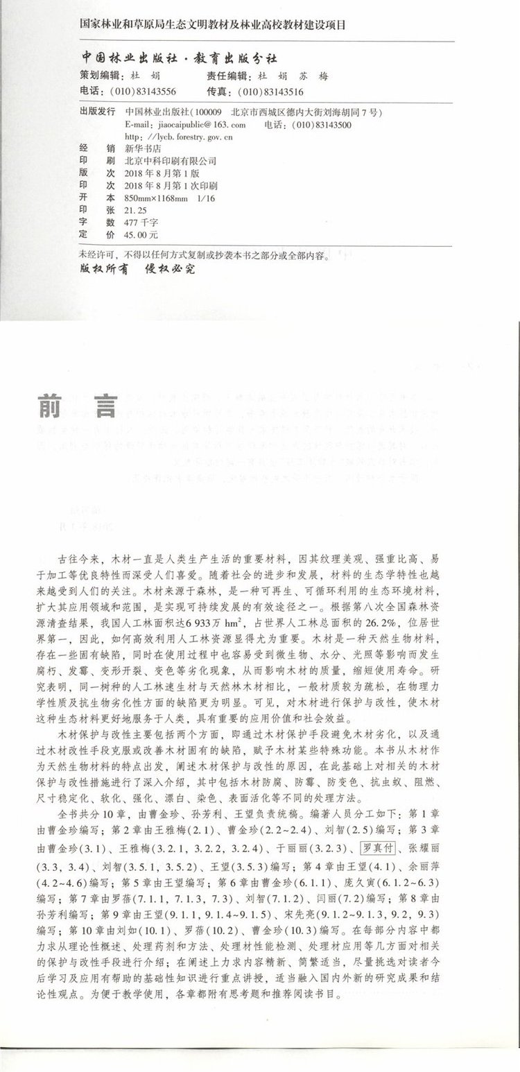 木材保护与改性 9687 曹金珍 编 普通高等教育十三五规划教材 高等院校木材科学与工程专业规划教材 中国林业出版社 畅销书