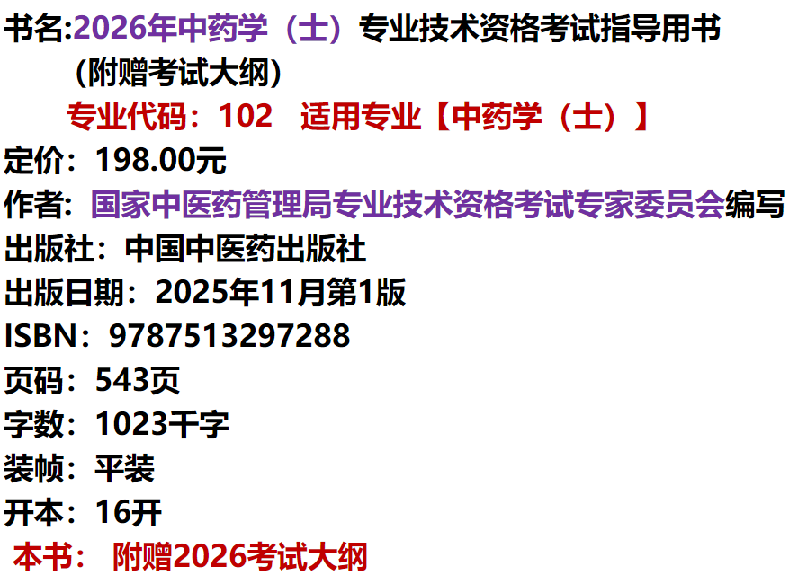 2026年中药学(士)专业技术资格考试指导用书 专业代码102 国家中医药管理局专业技术资格考试专家委员会 中医药出版社初级士考试