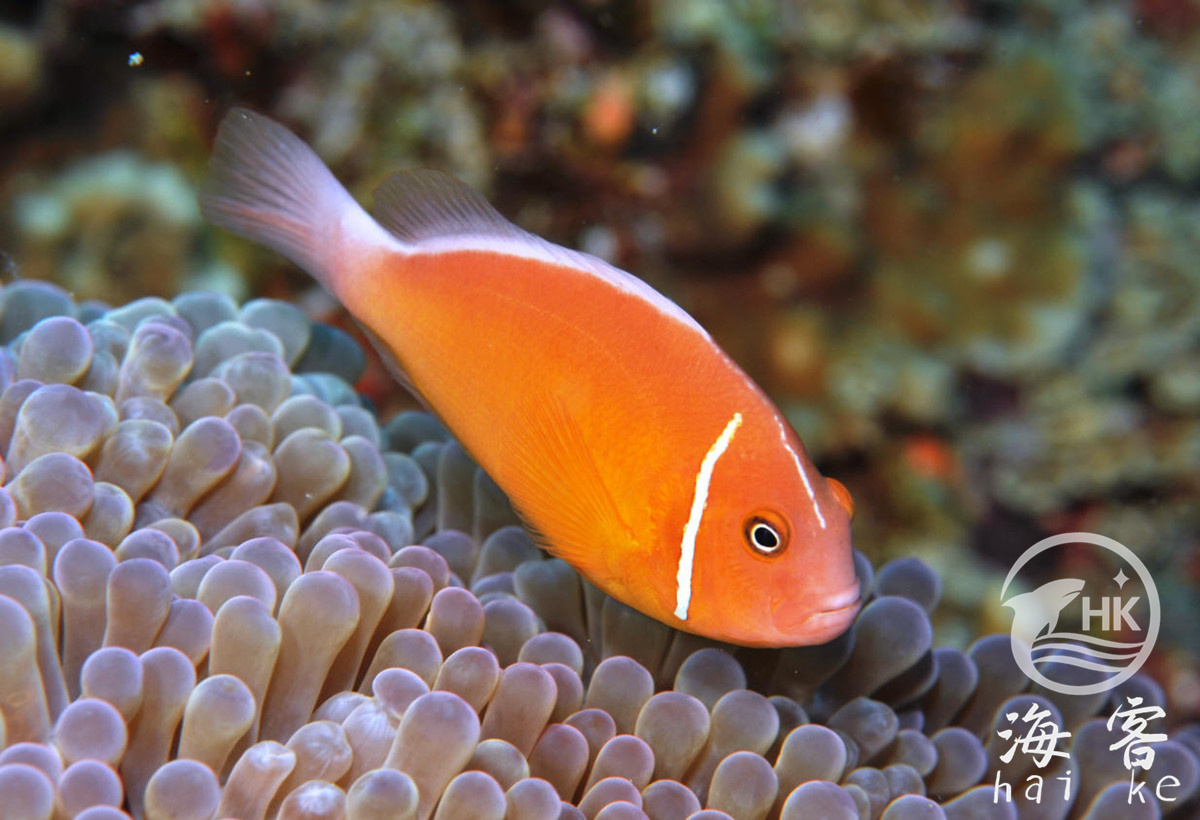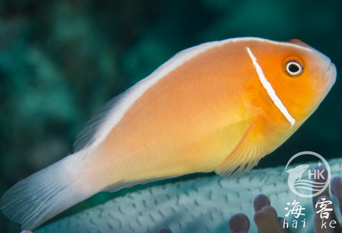 也叫银环小丑。身体桃红色,头部后面有一条白色的斑纹,背部也有一条白色斑纹从嘴部延伸到尾部。