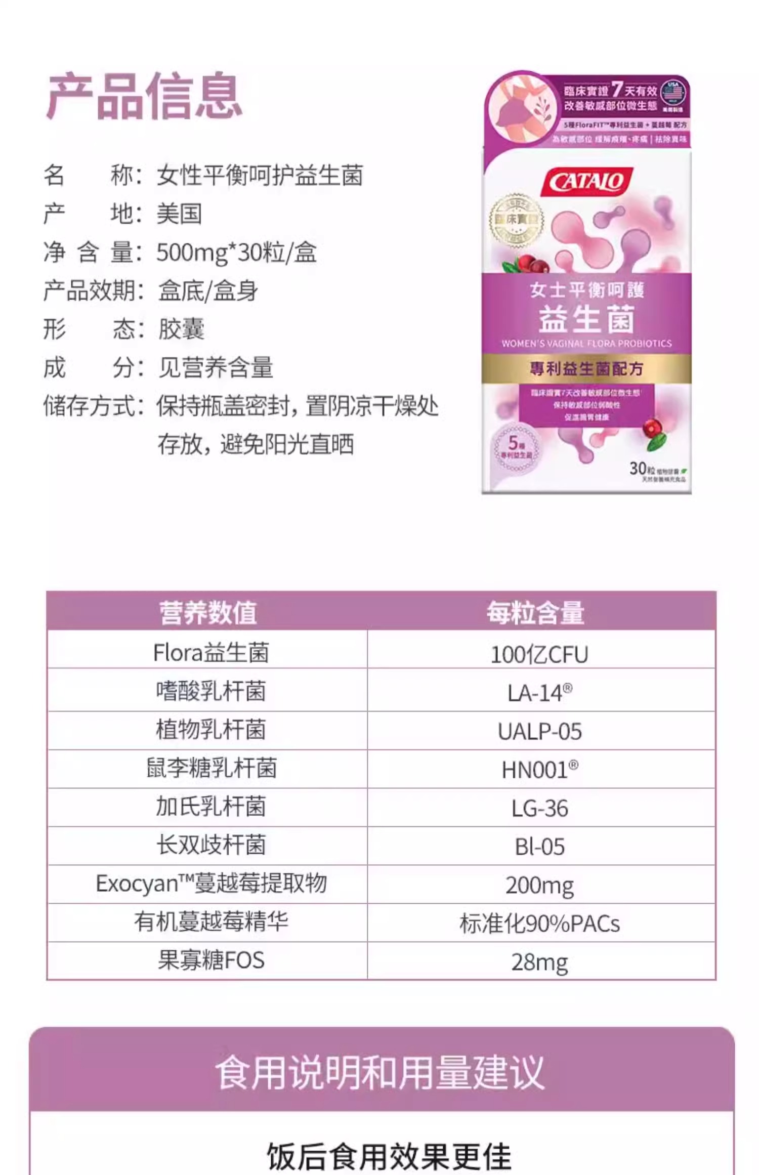 Catalo 家得路 女士平衡呵护益生菌 30粒【2026.3】