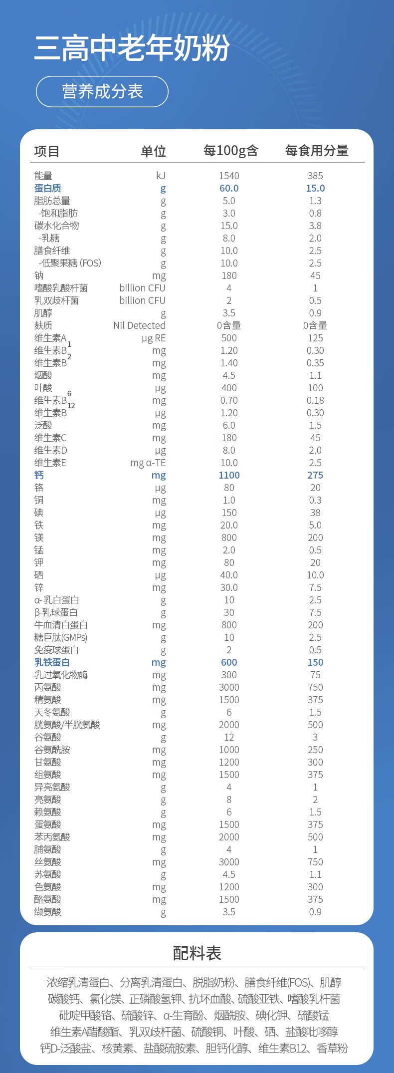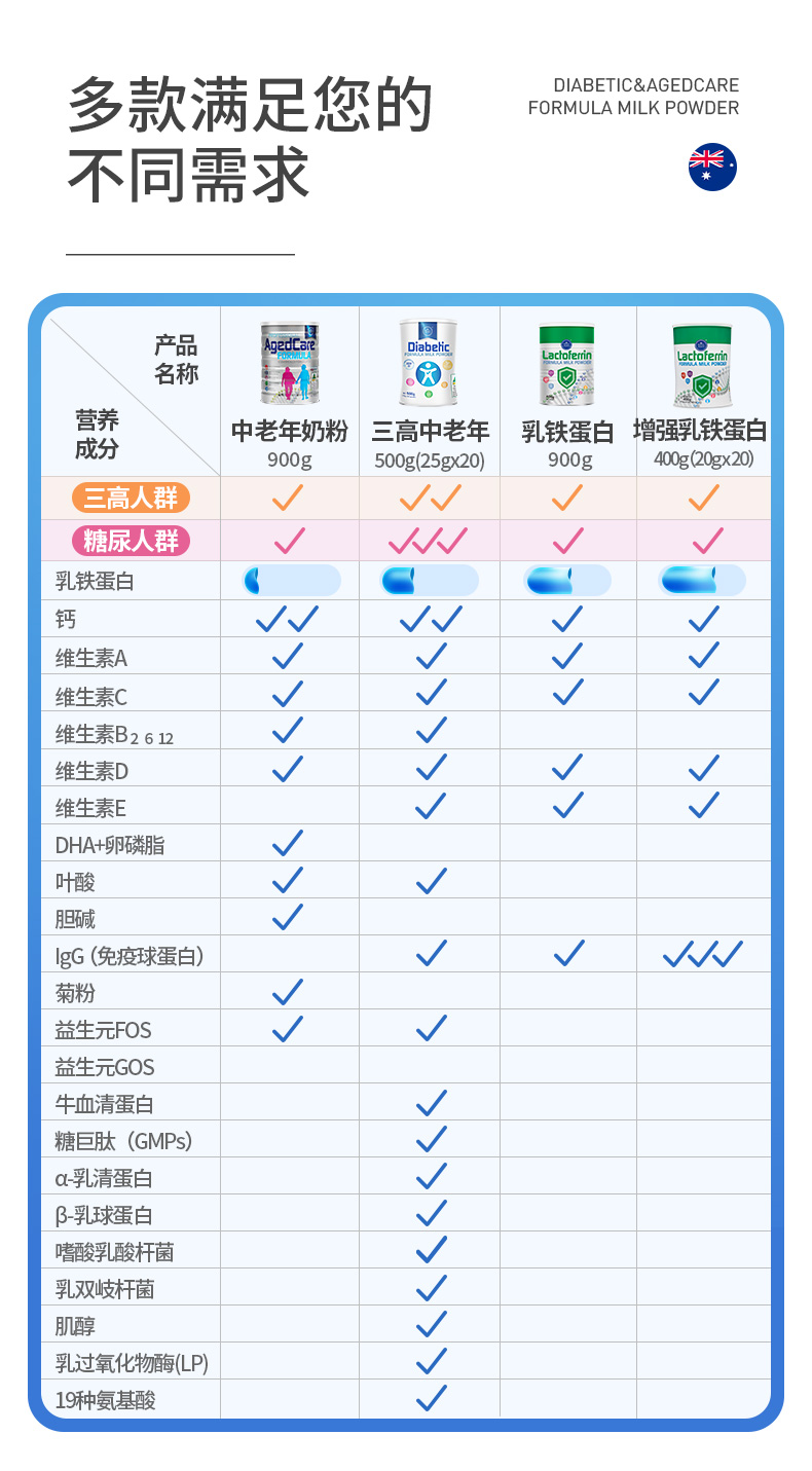 【保税仓】皇家澳纽(ROYAL AUSNZ) 中老年高钙无蔗糖老人奶粉中老年奶粉900g/罐