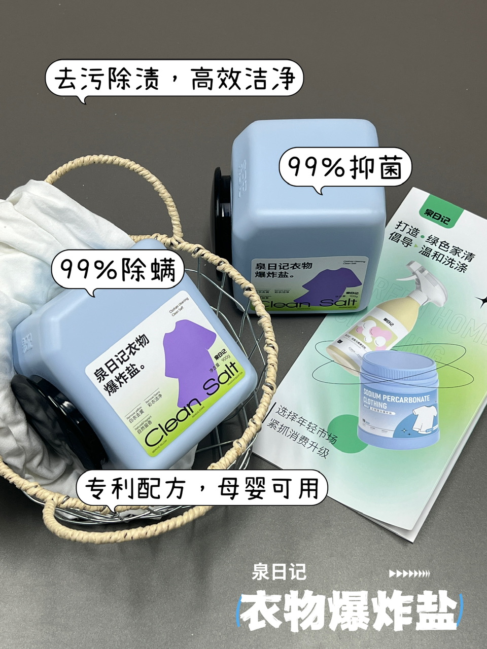 【泉日记爆炸盐】新升级第4代❗泉日记爆炸盐组合,所有成分天花板配比效果直接拉满❗有国家发明专利❗ 泉日记多功能爆炸盐1000g &泉日记衣物爆炸盐900g