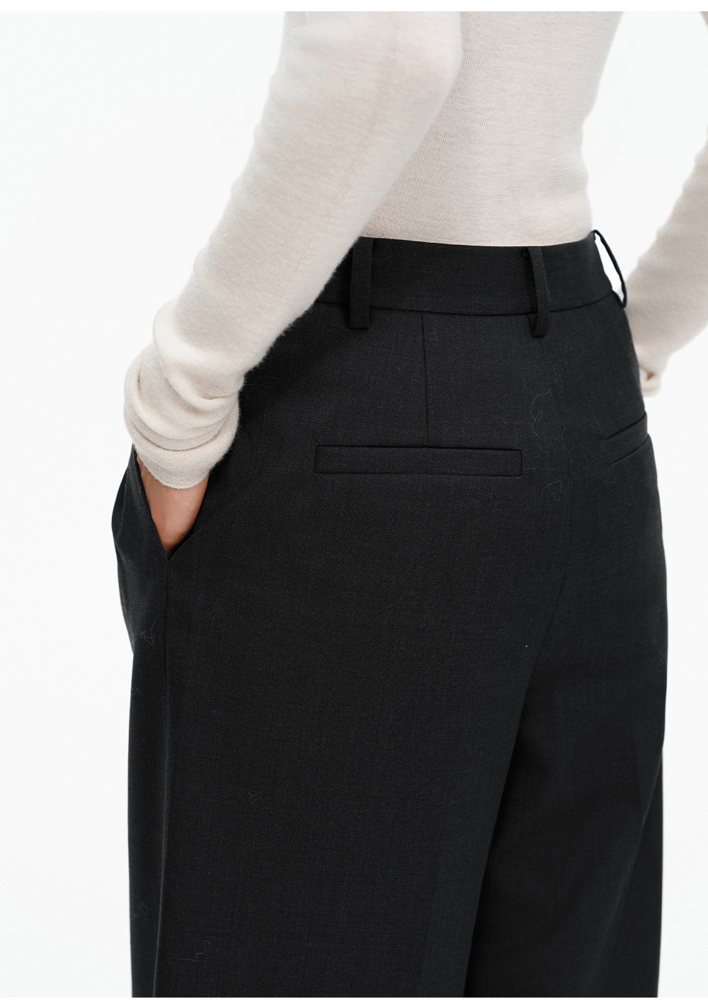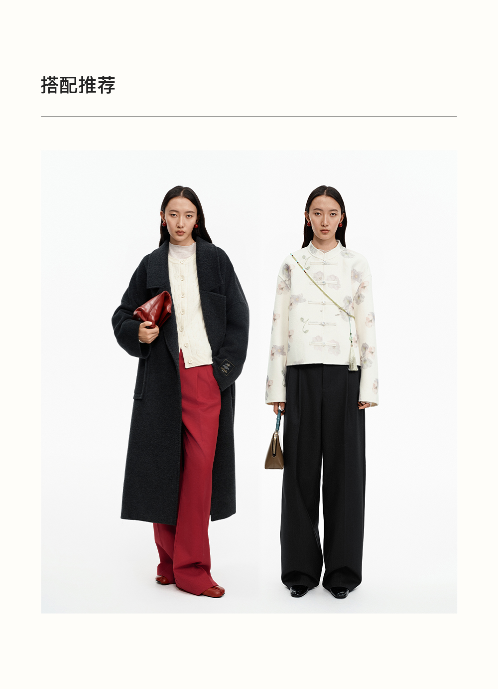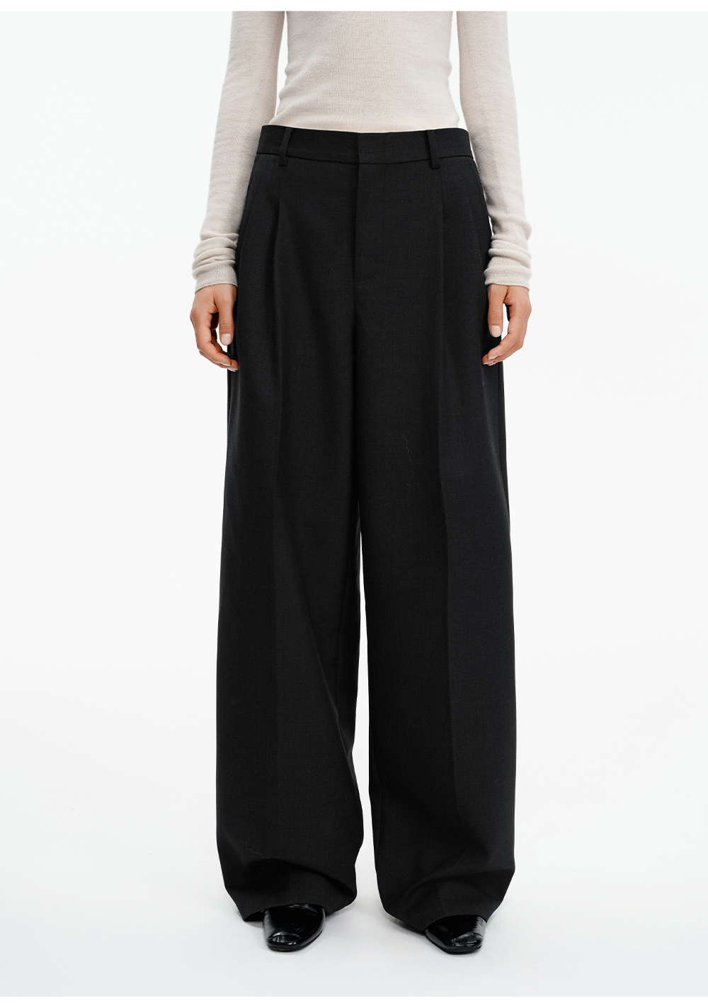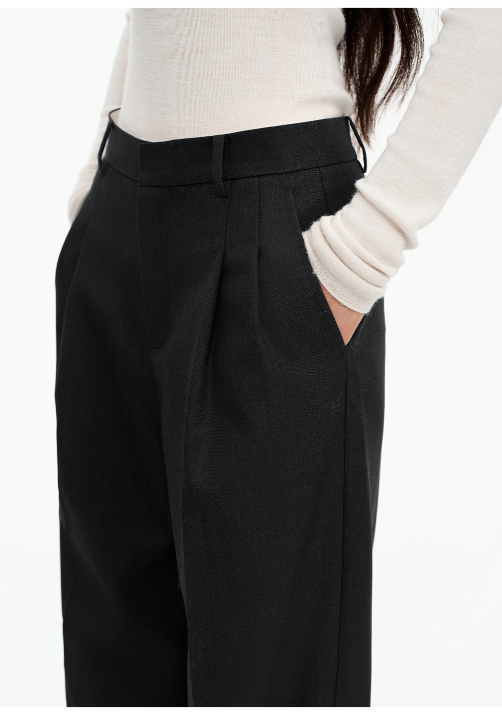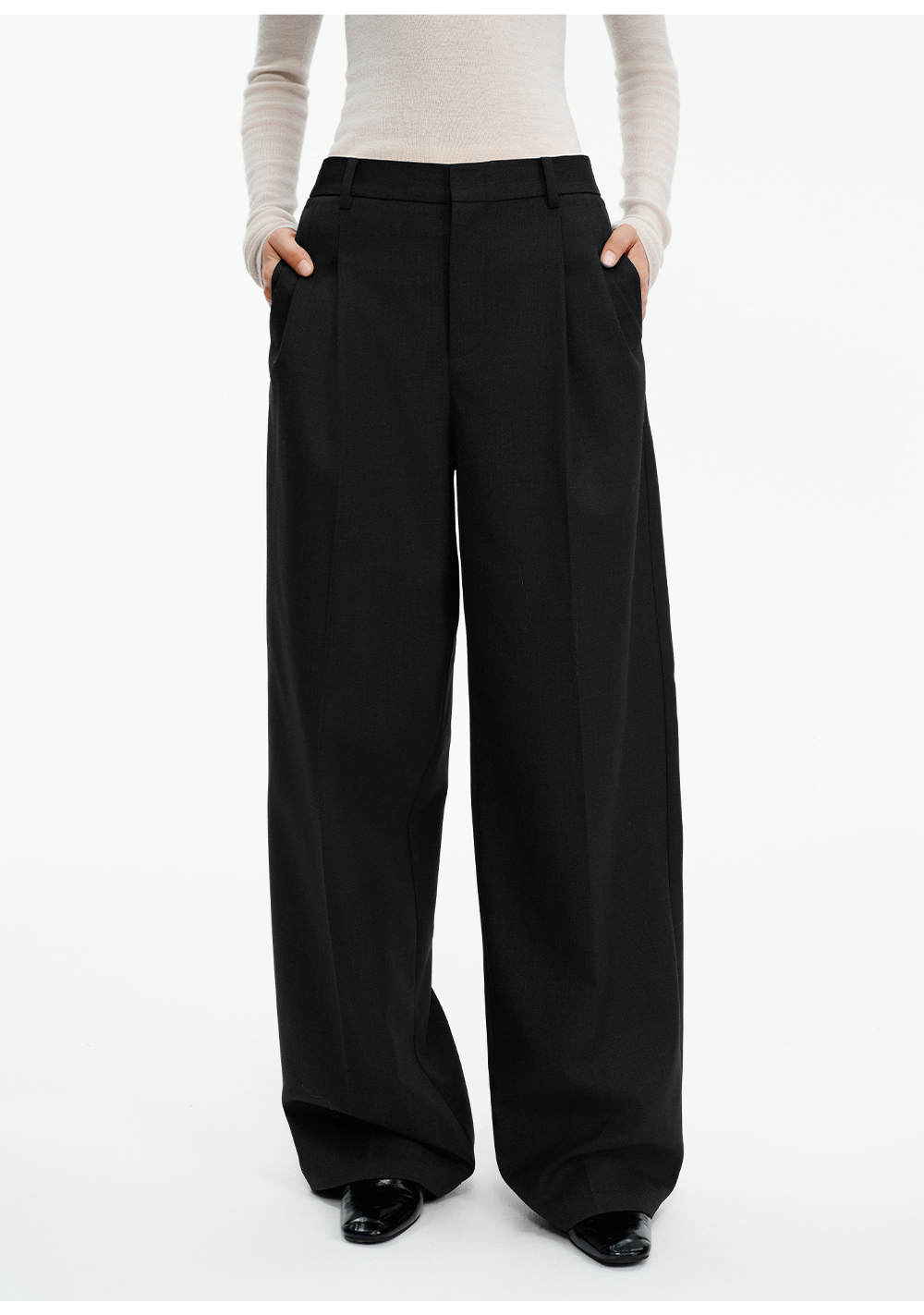 SELFWHO绵羊毛混纺圣诞红压褶西装裤女2025冬新款宽松直筒休闲裤