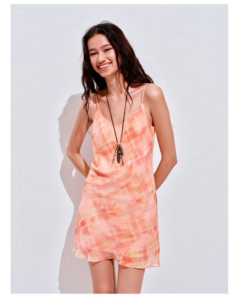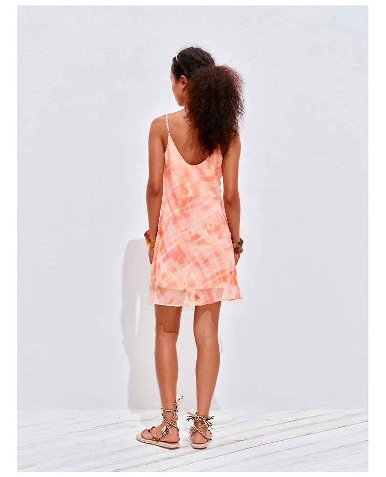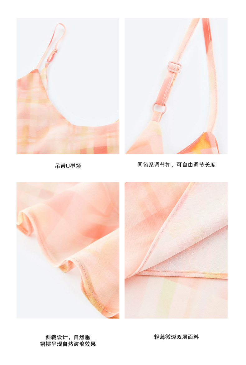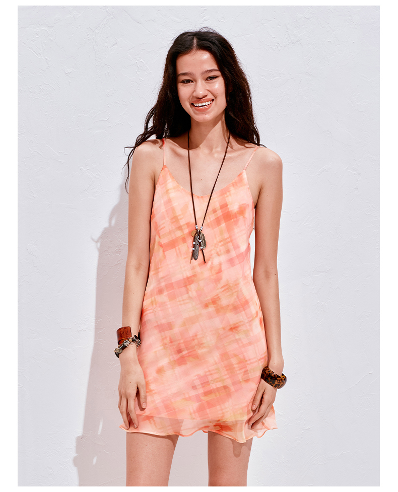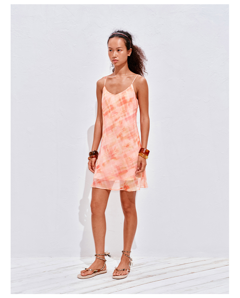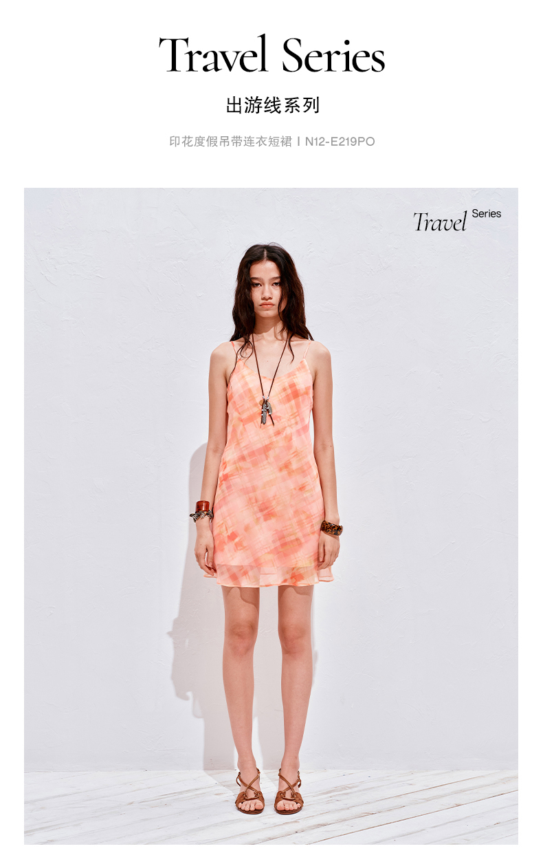 NUTH 度假印花双层吊带连衣裙轻薄微透连衣裙短裙
