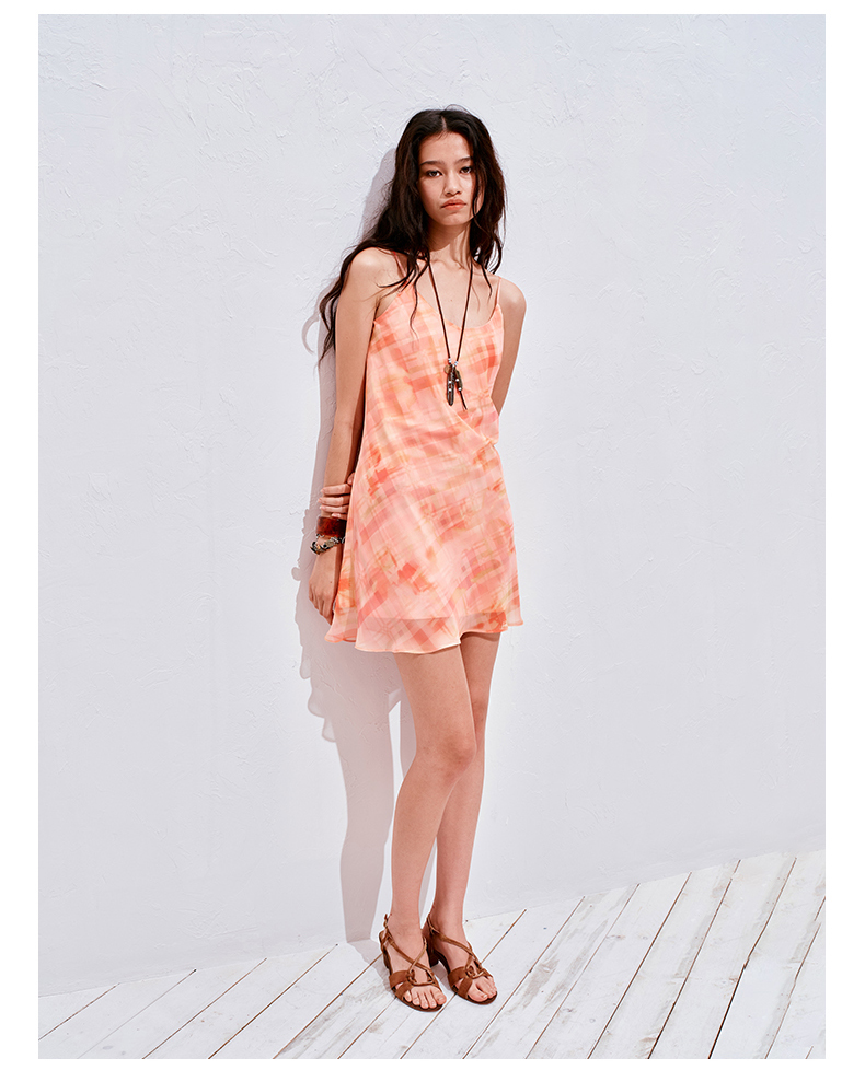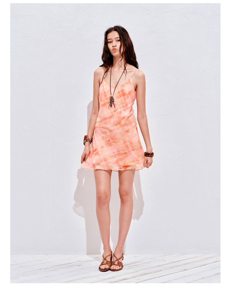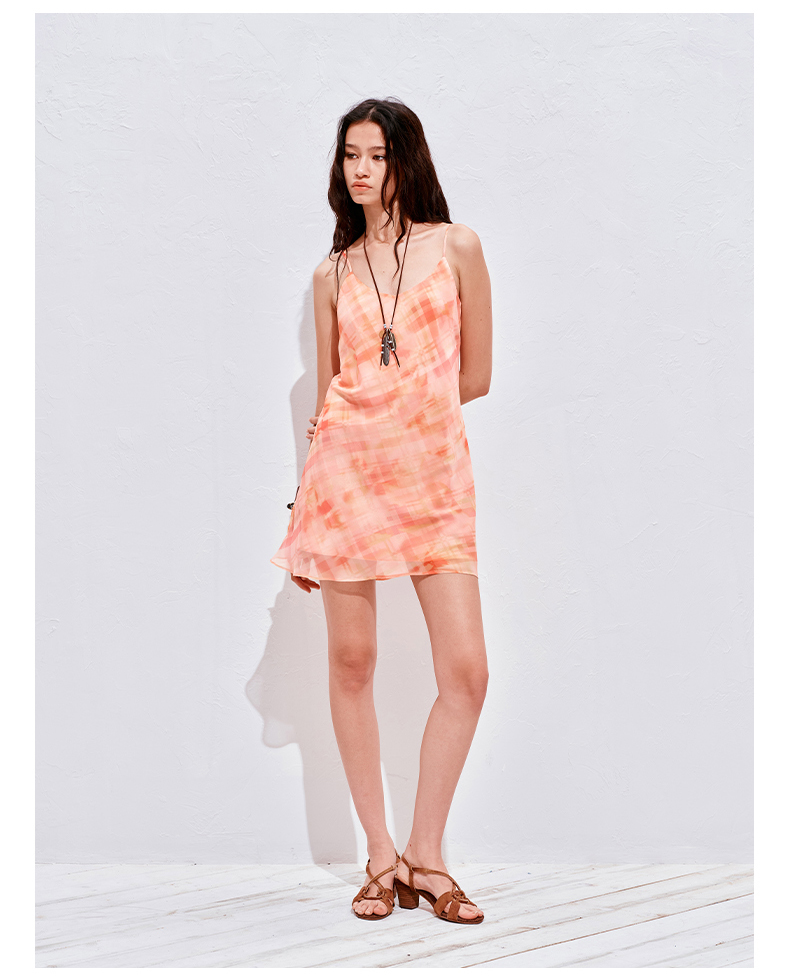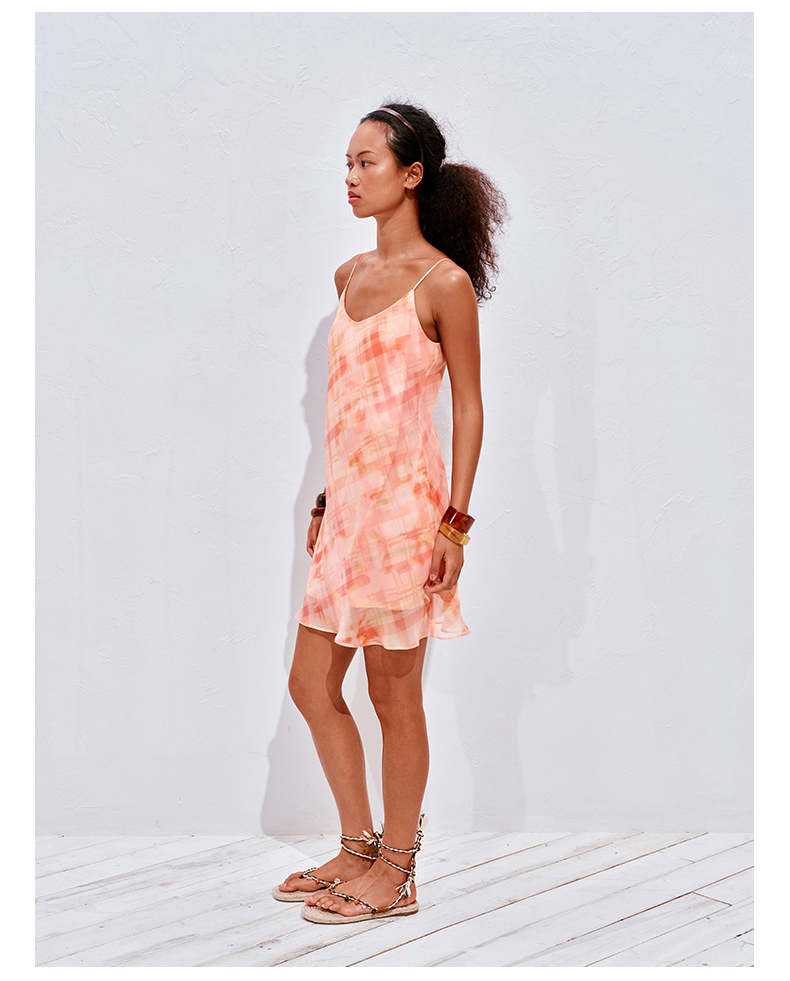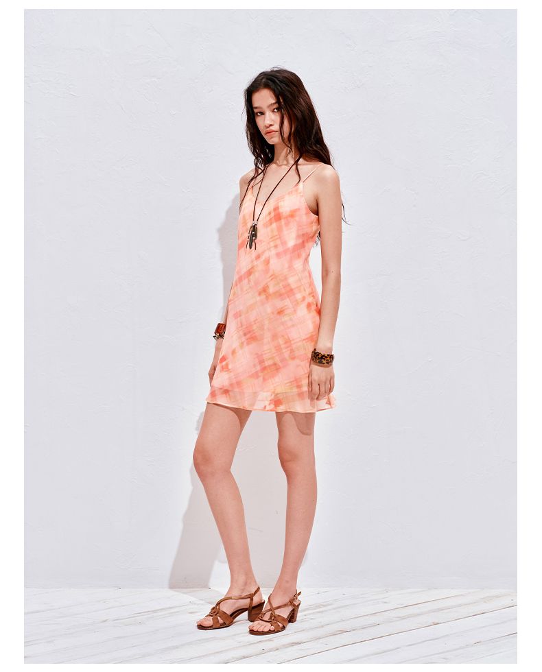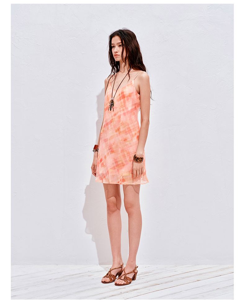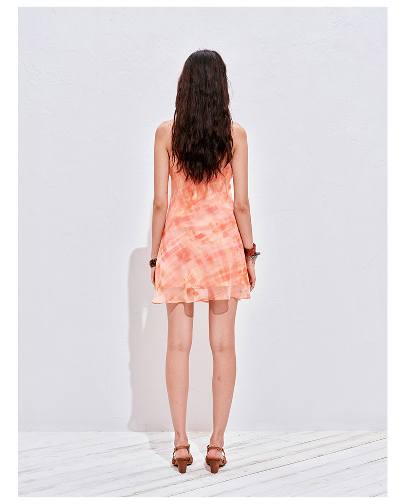 NUTH 度假印花双层吊带连衣裙轻薄微透连衣裙短裙