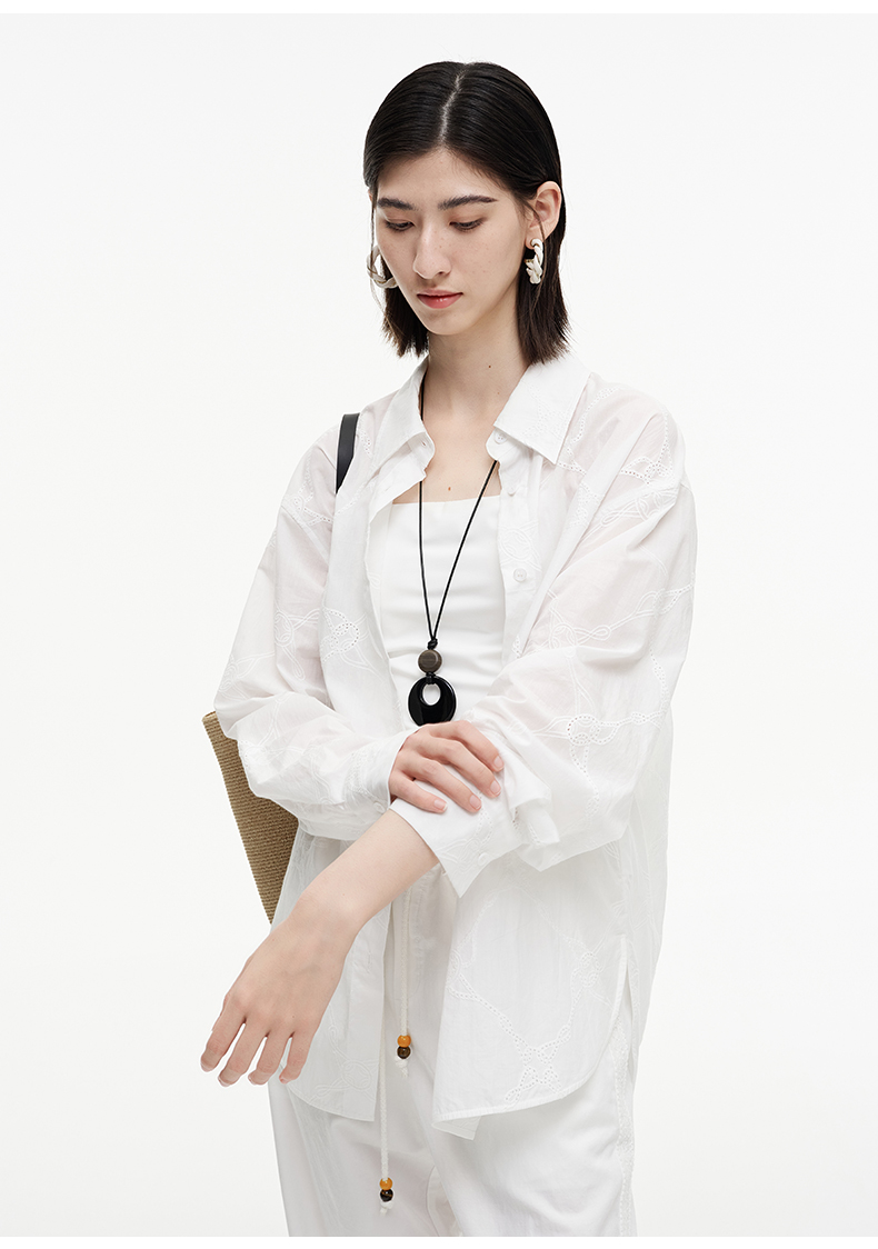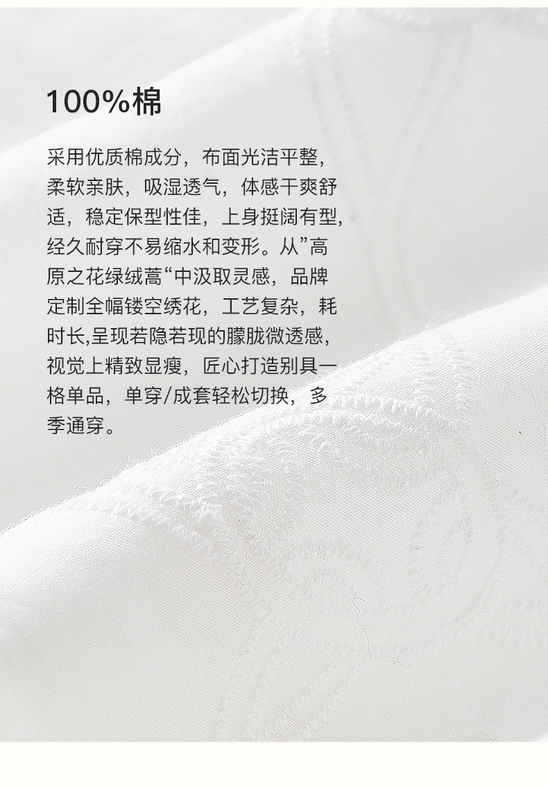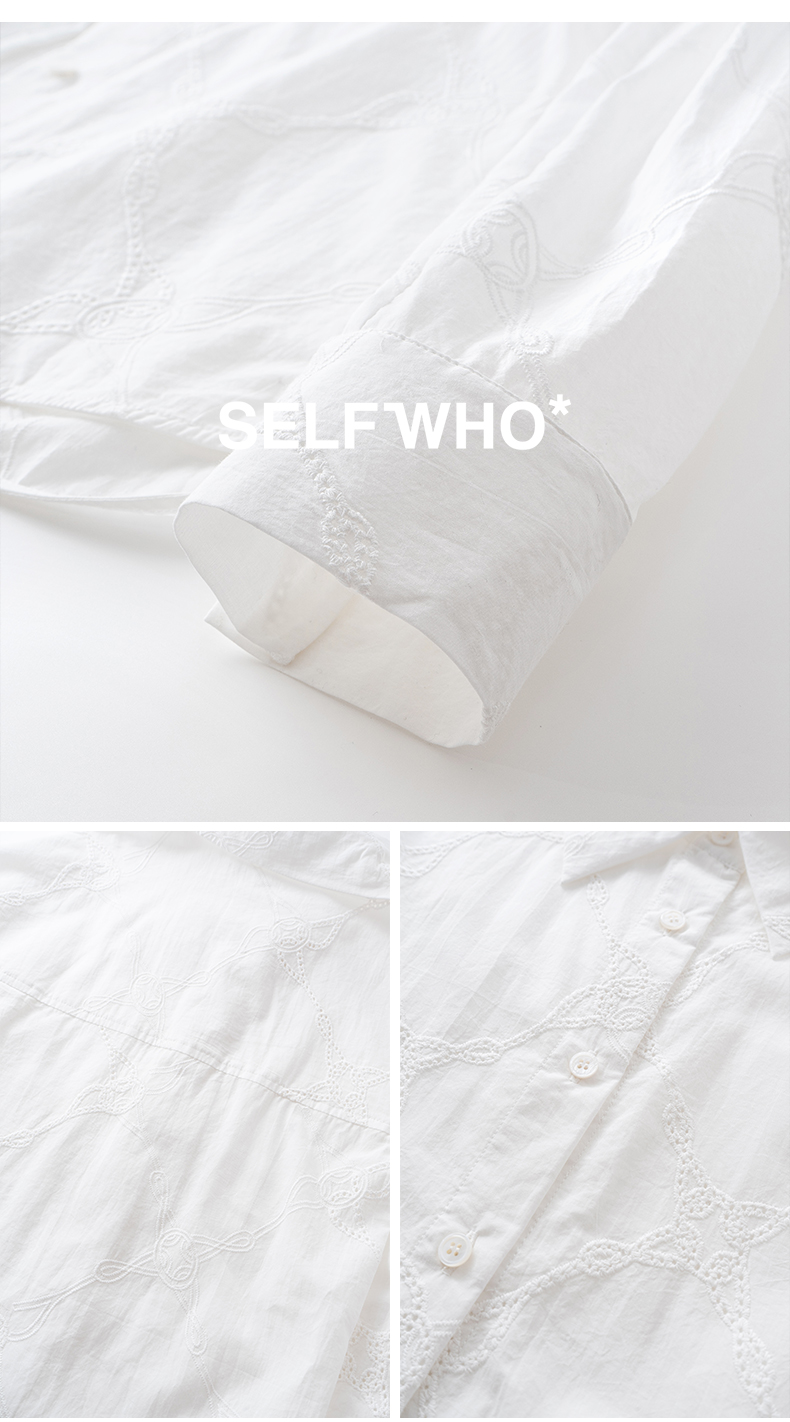 SELFWHO绿绒蒿系列纯棉白色绣花衬衫女2025秋季新款宽松透气上衣