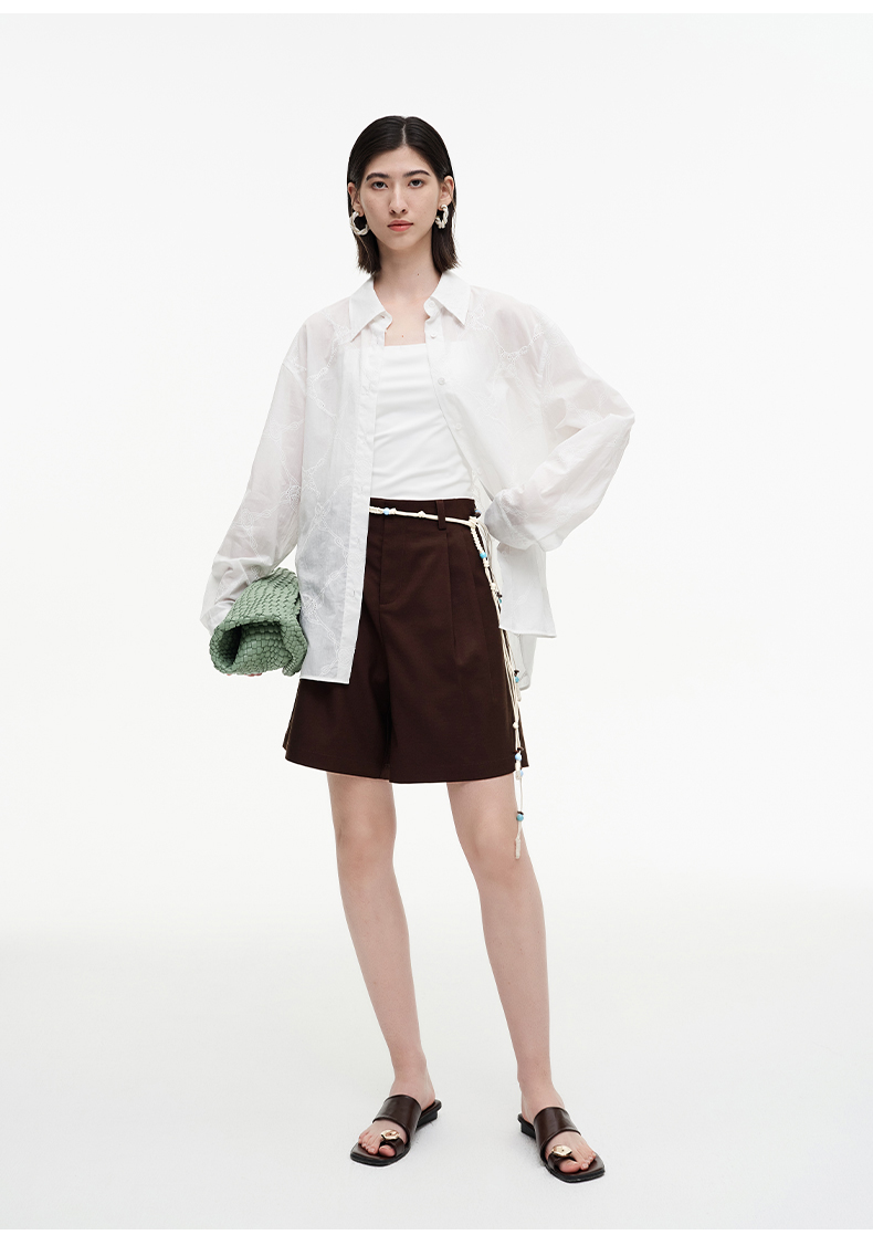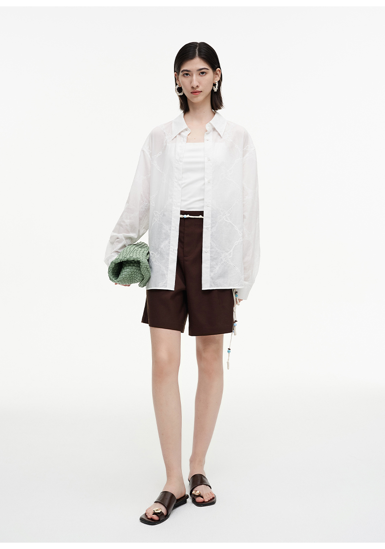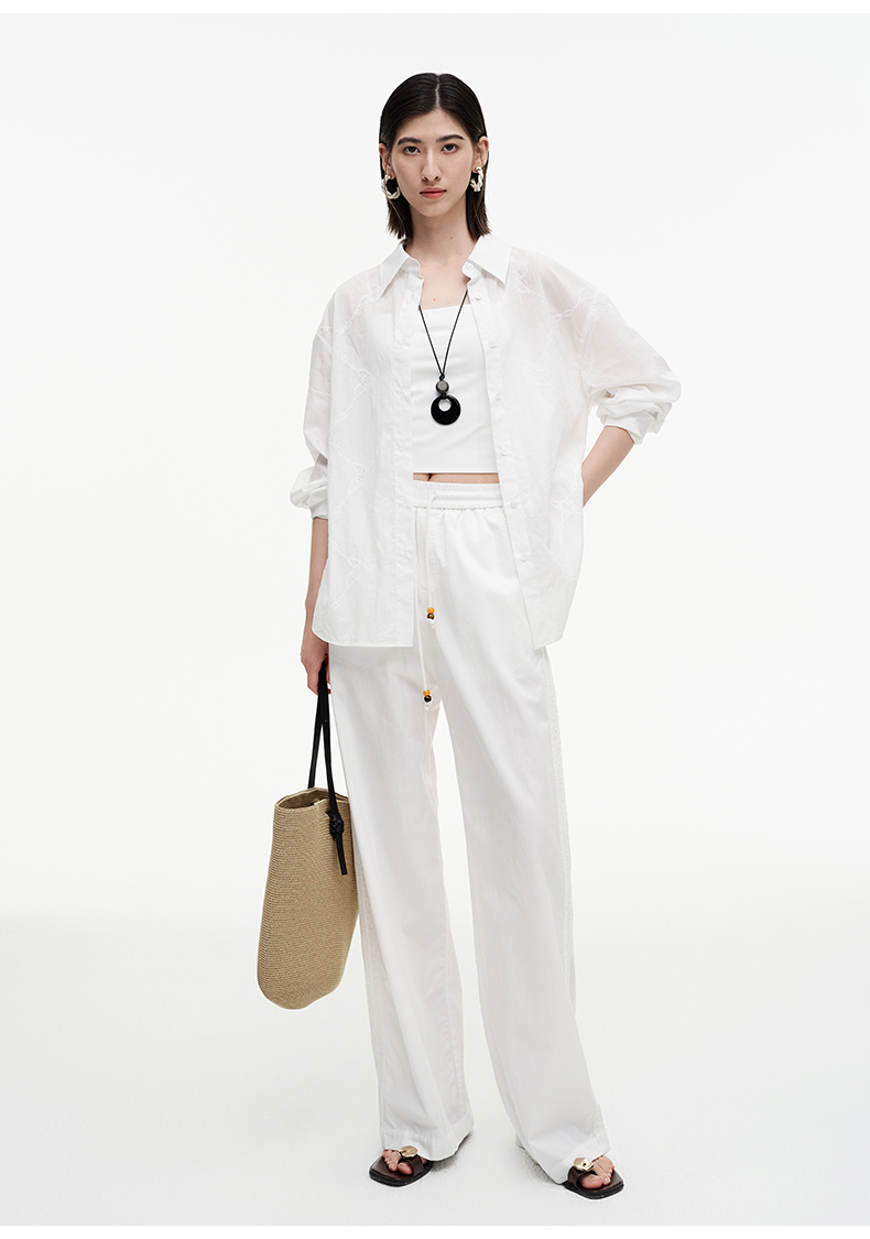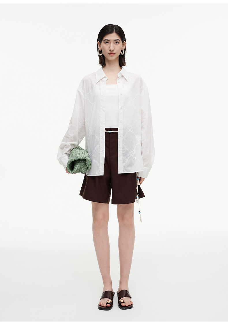 SELFWHO绿绒蒿系列纯棉白色绣花衬衫女2025秋季新款宽松透气上衣