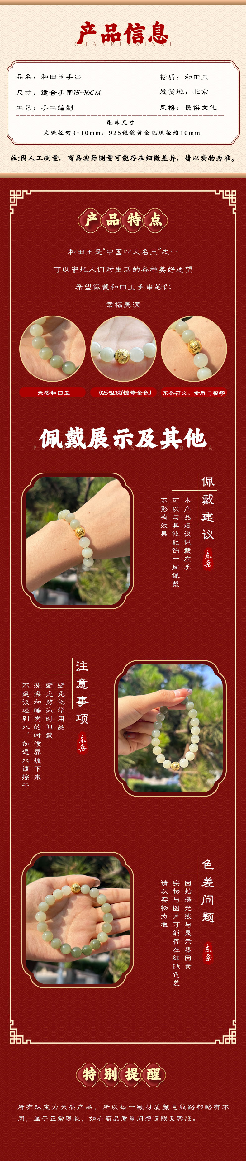 和田玉观音绿手串(金色款)