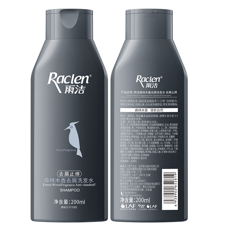 雨洁 森林木香去屑洗发水(冰激酷爽)200ml YJ-004