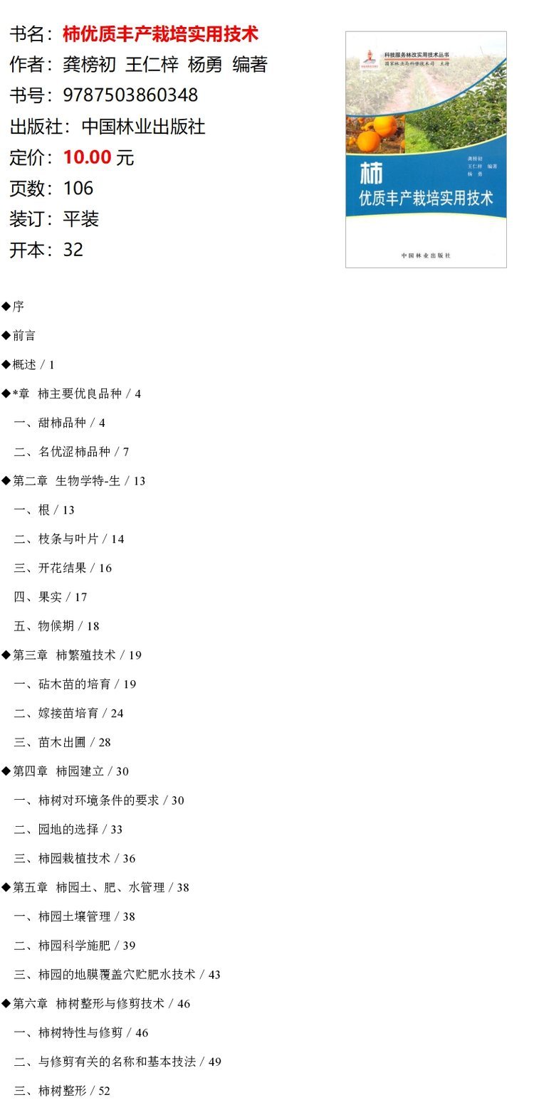 柿优质丰产栽培实用技术 6034 科技服务林改实用技术丛书 繁殖技术修剪技术花果管理技术采收贮藏加工病虫害防治 中国林业出版社