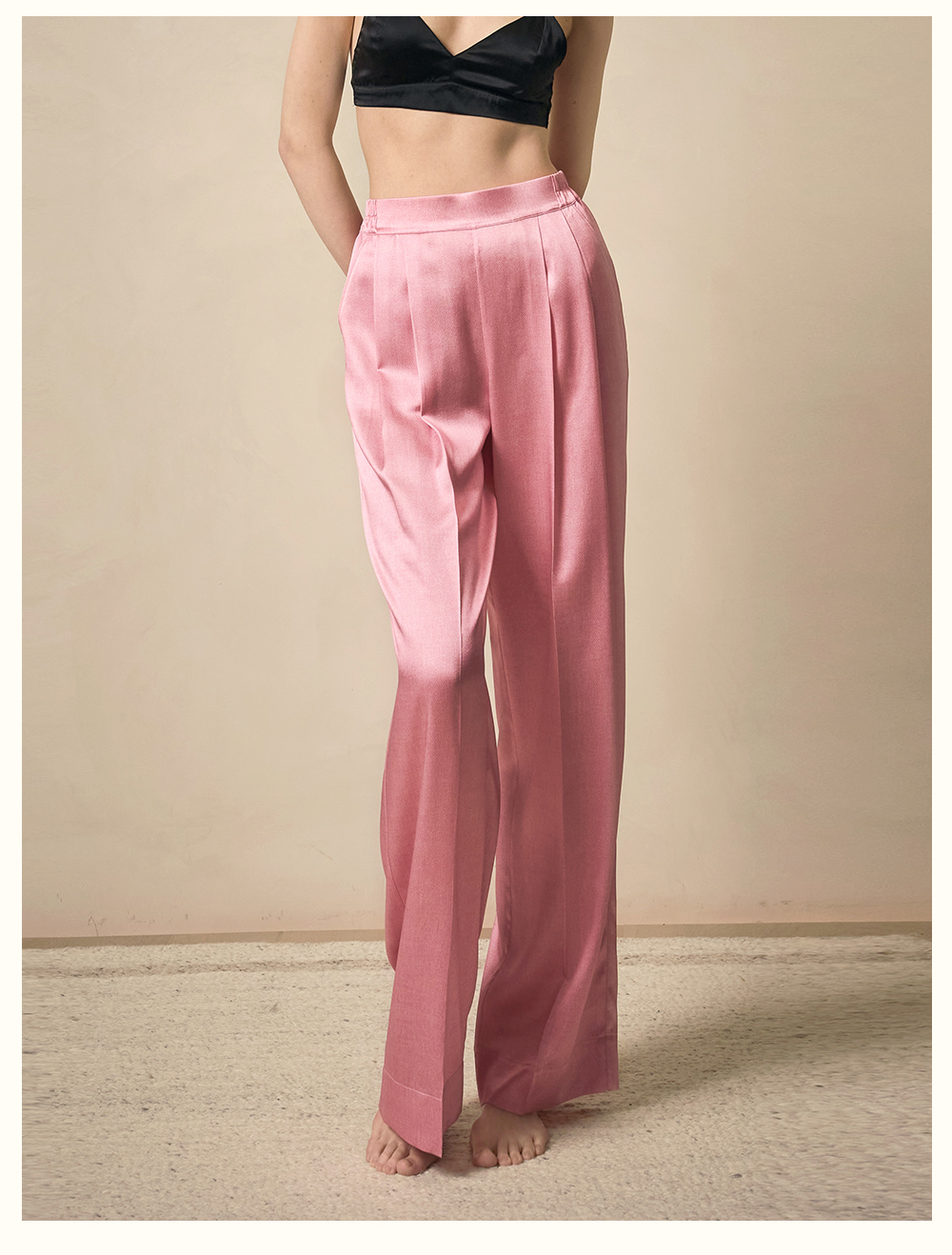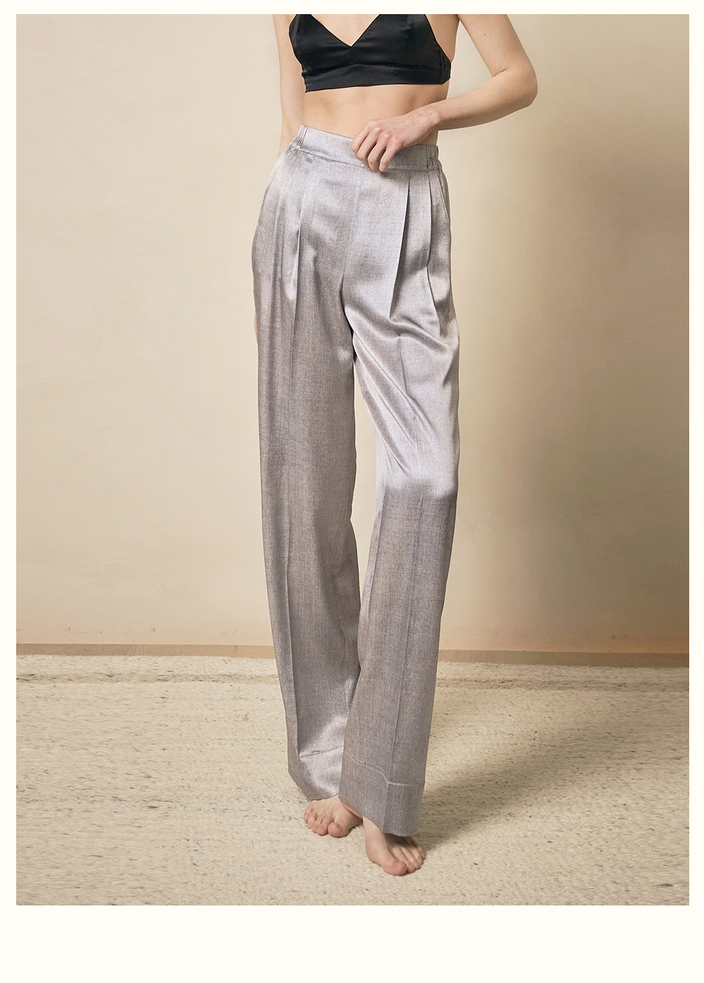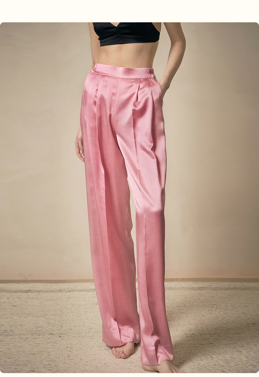 Solo seta22姆米真丝女士长裤桑蚕丝鱼骨纹可外穿睡裤2025秋冬