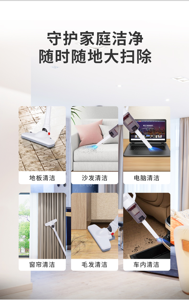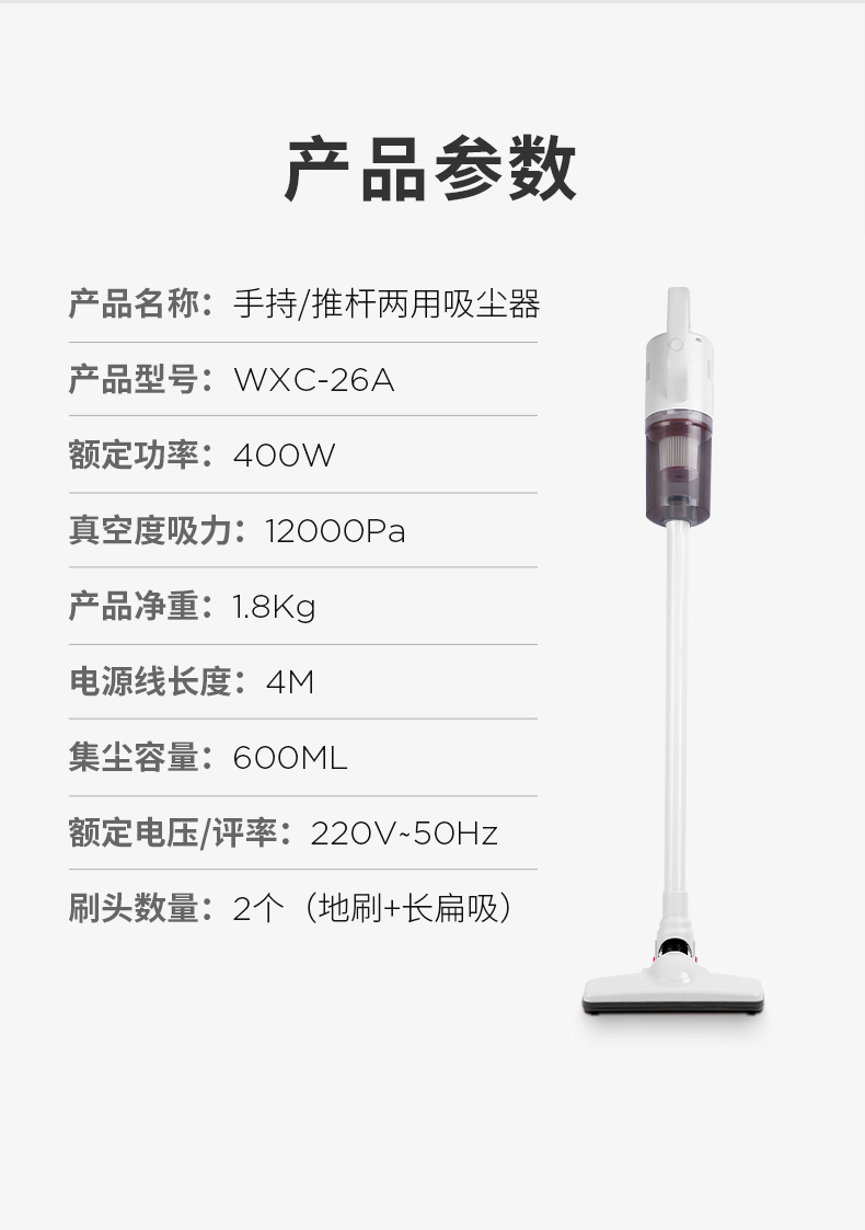 美国西屋(Westinghouse) 家用有线吸尘器手持推杆两用大吸力吸尘器 WXC-26A 白色
