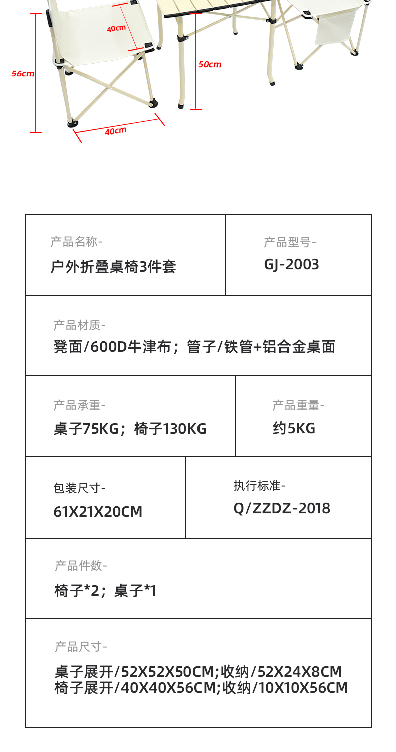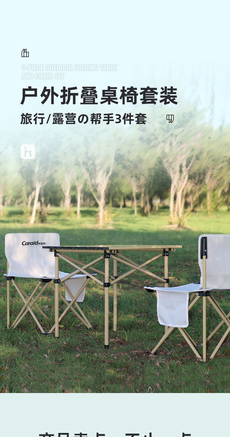 车管家 户外折叠桌椅套装 便携野外露营野餐桌椅餐桌三件套 GJ-2003