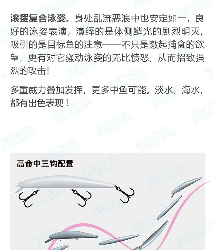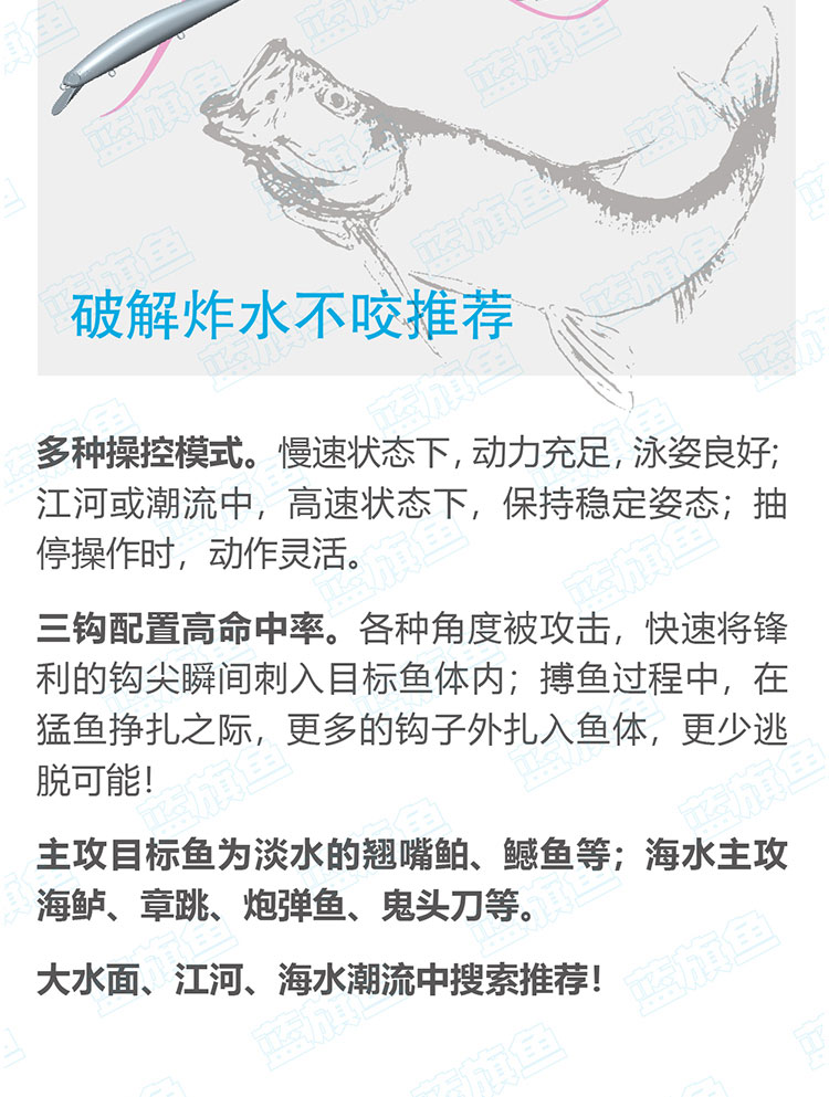 蓝旗鱼邪道1号超浅湾 深湾远投浮水米诺翘嘴鳡鱼海鲈鱼饵路亚饵