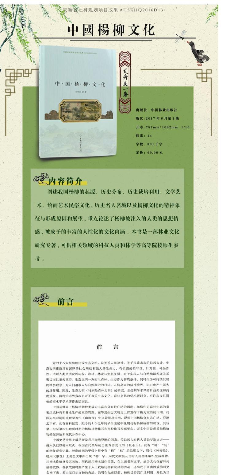 中国杨柳文化 8948 杨柳的起源 历史分布 栽培利用 文学艺术 民俗文化 林业文化研究 学习参考书 中国林业出版社