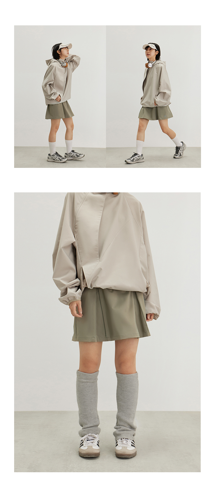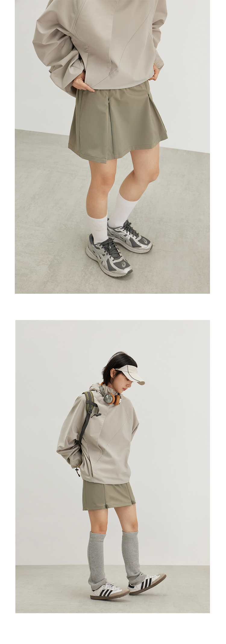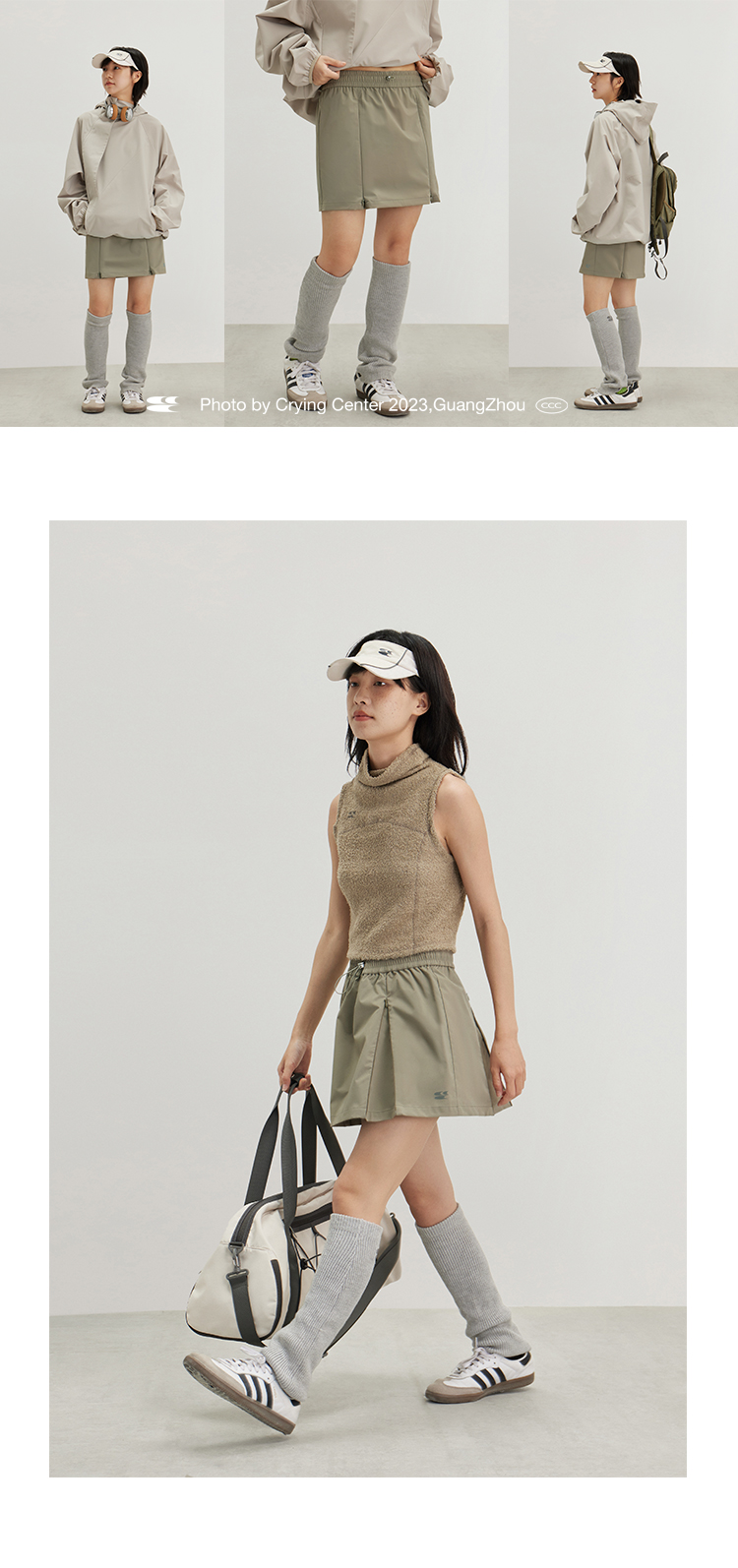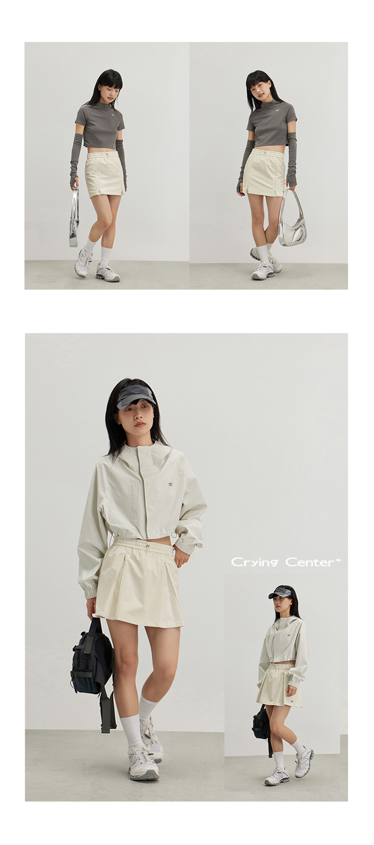 CryingCenter 奶油白灰绿风衣百褶裙两穿运动网球短裙 哭喊中心