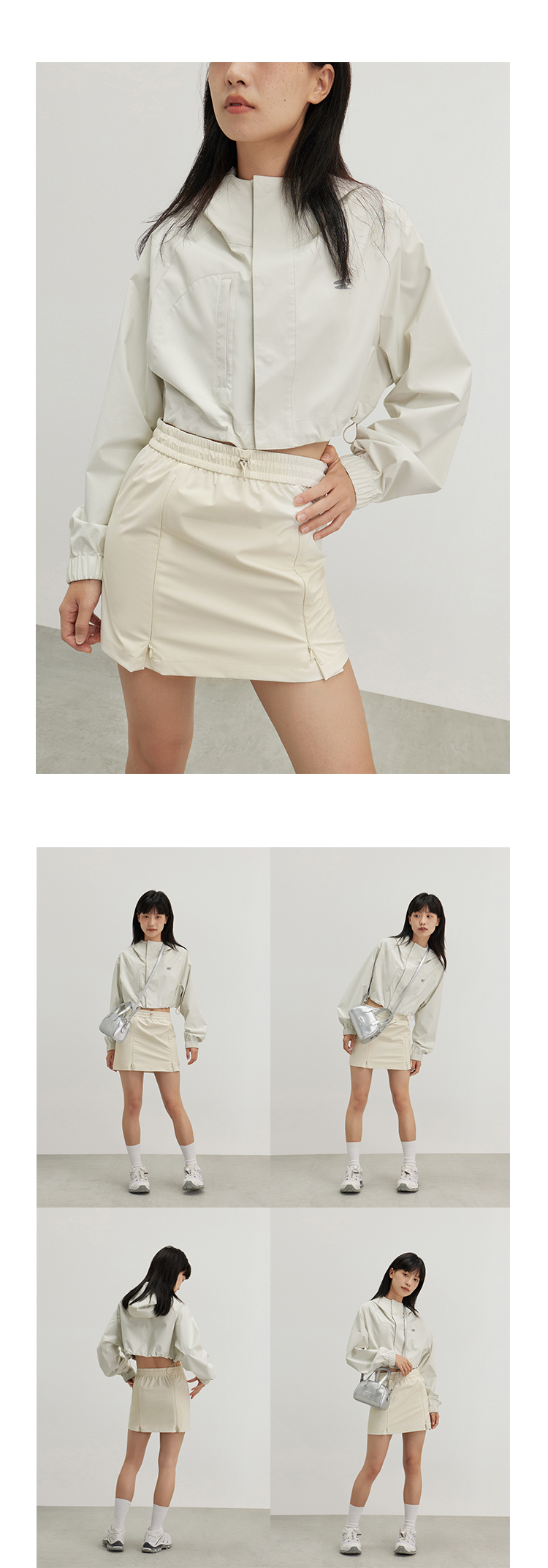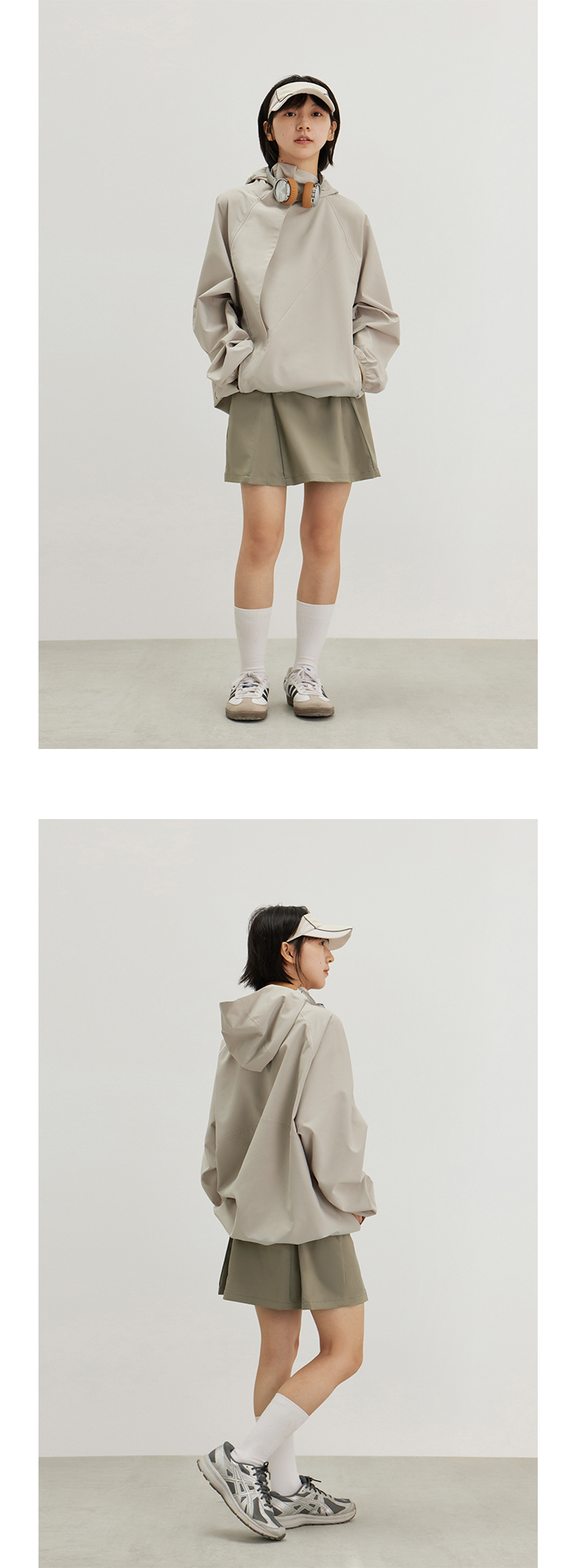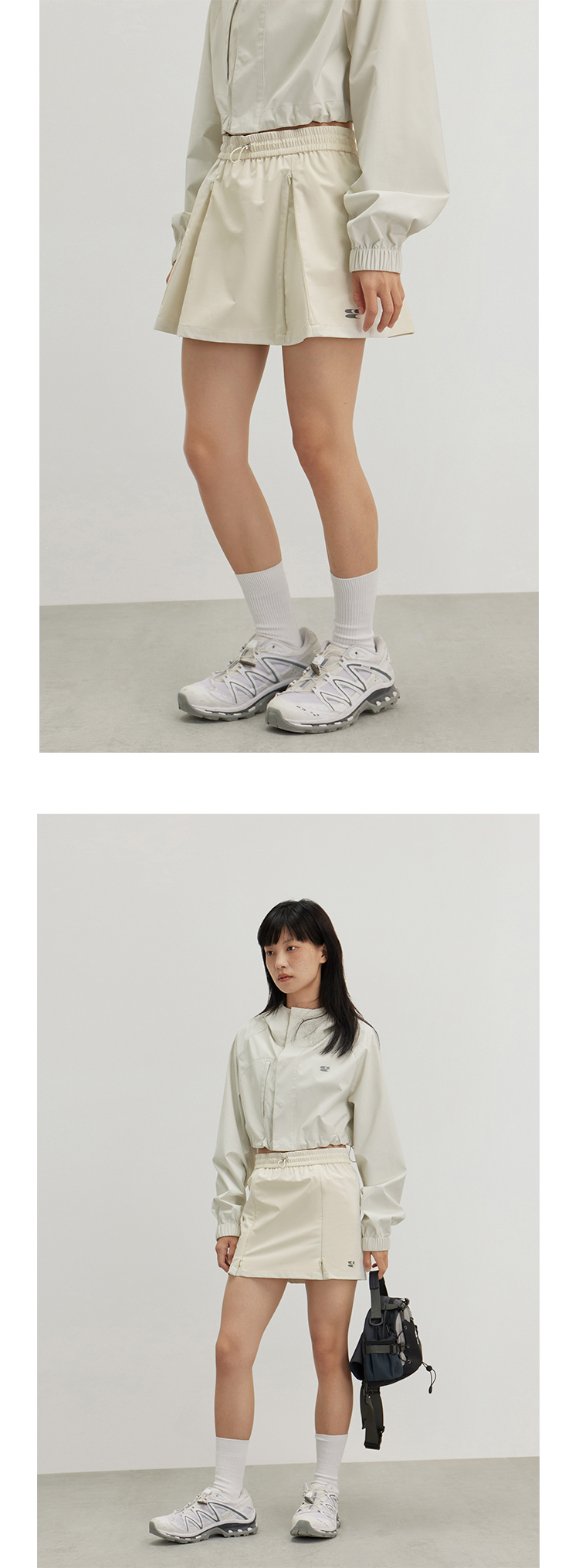 CryingCenter 奶油白灰绿风衣百褶裙两穿运动网球短裙 哭喊中心