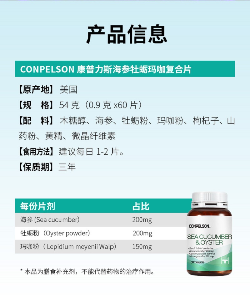 CONPELSON康普力斯海参牡蛎粉复合片(压片糖果) 60粒*1瓶