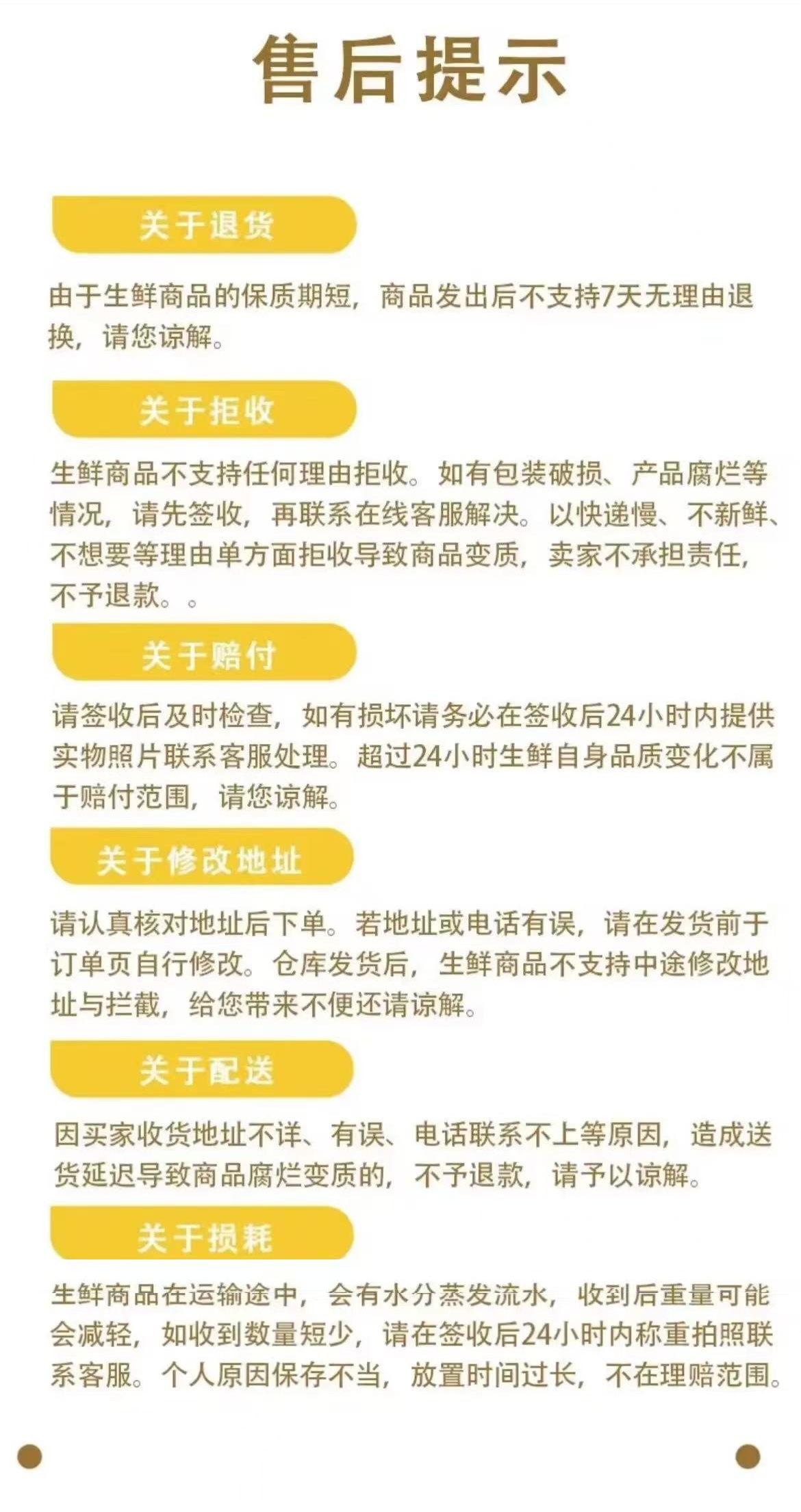 商品顺丰发货后不支持拦截拒收退款,熟食商品不支持7天无理由退款,质量问题可以退货退款。