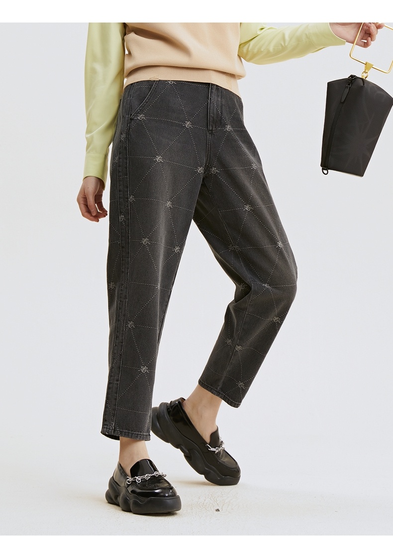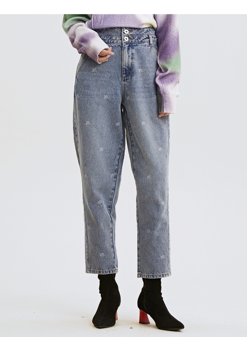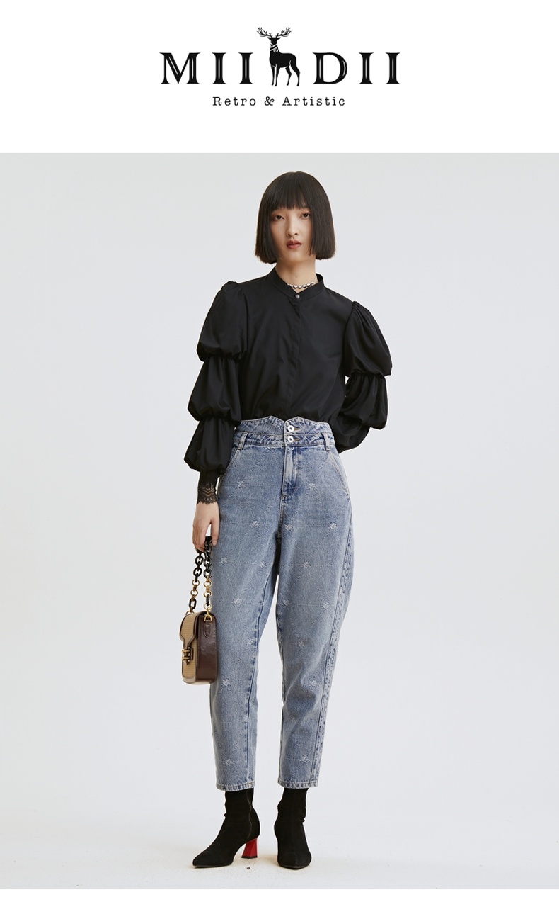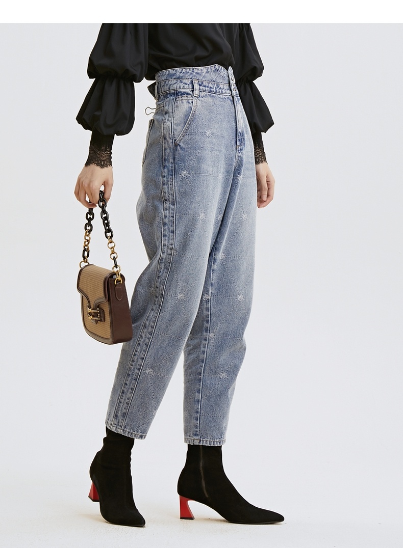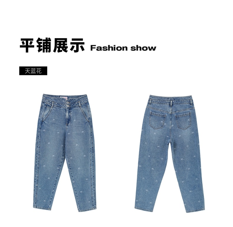 谜底萝卜牛仔裤2021秋季新款复古时尚宽松9分裤休闲裤女213MK1674