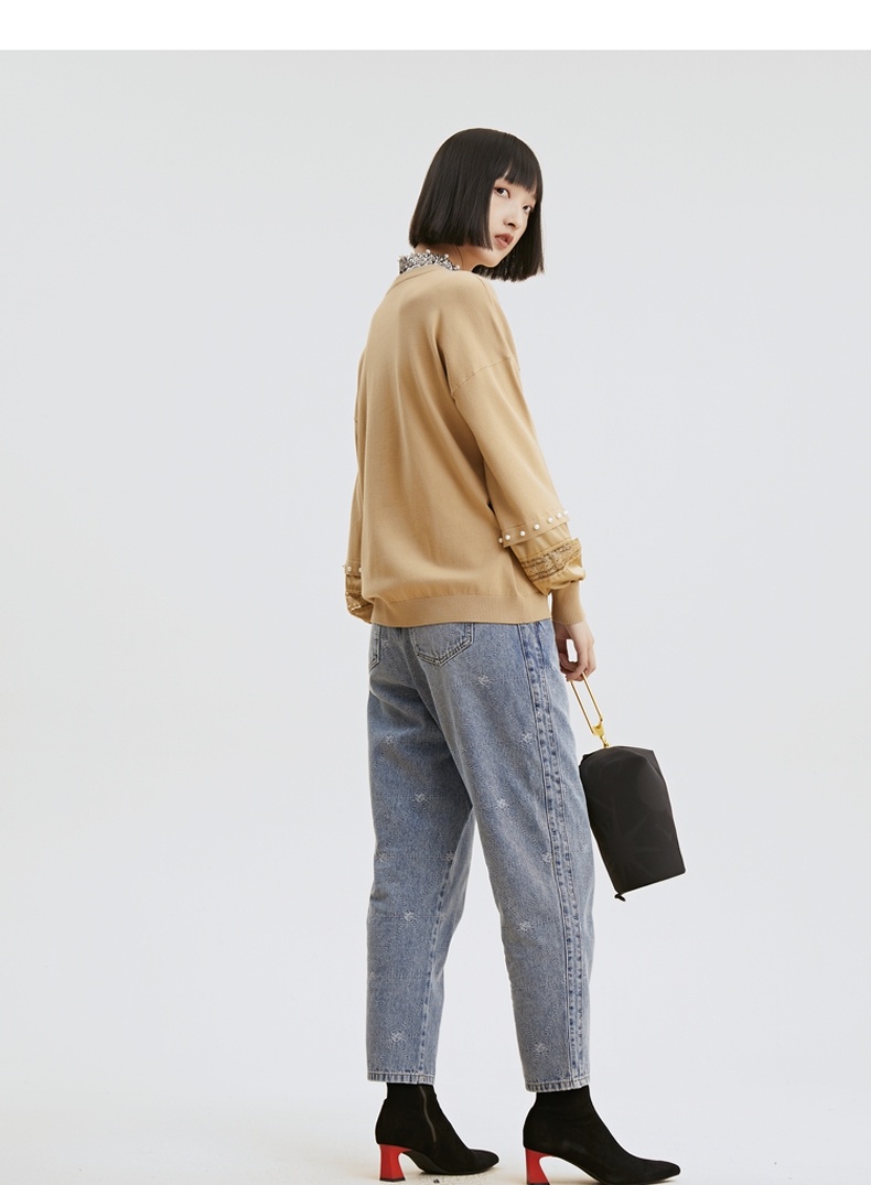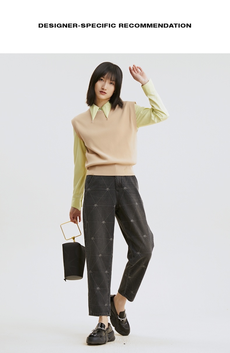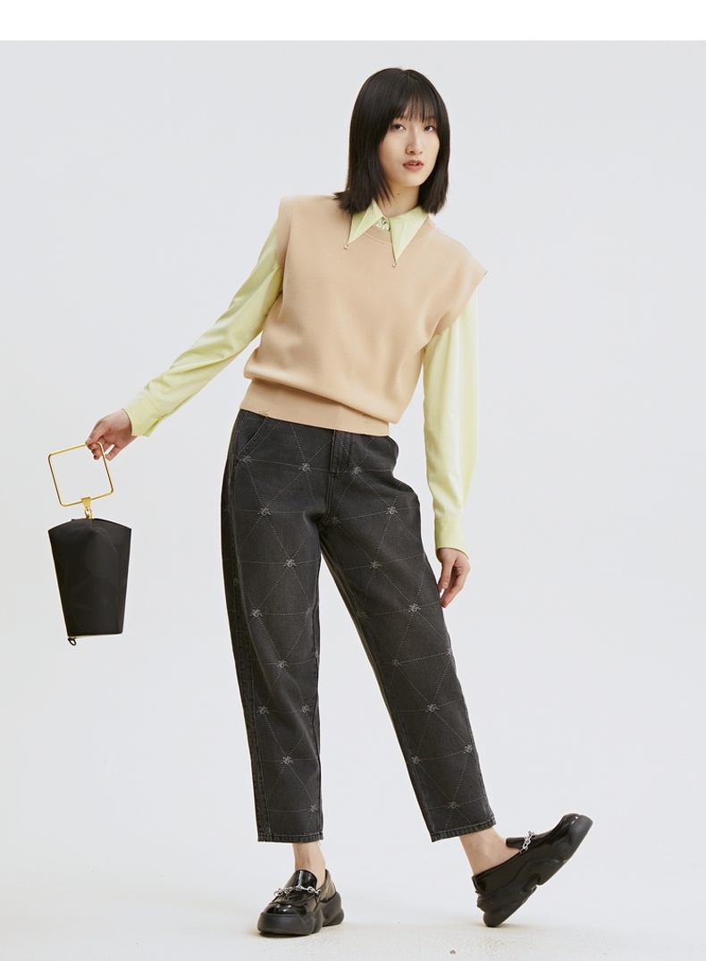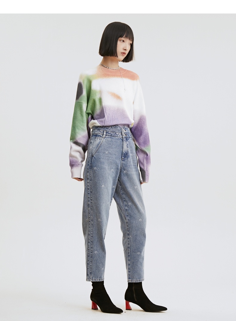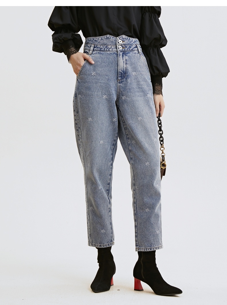 谜底萝卜牛仔裤2021秋季新款复古时尚宽松9分裤休闲裤女213MK1674