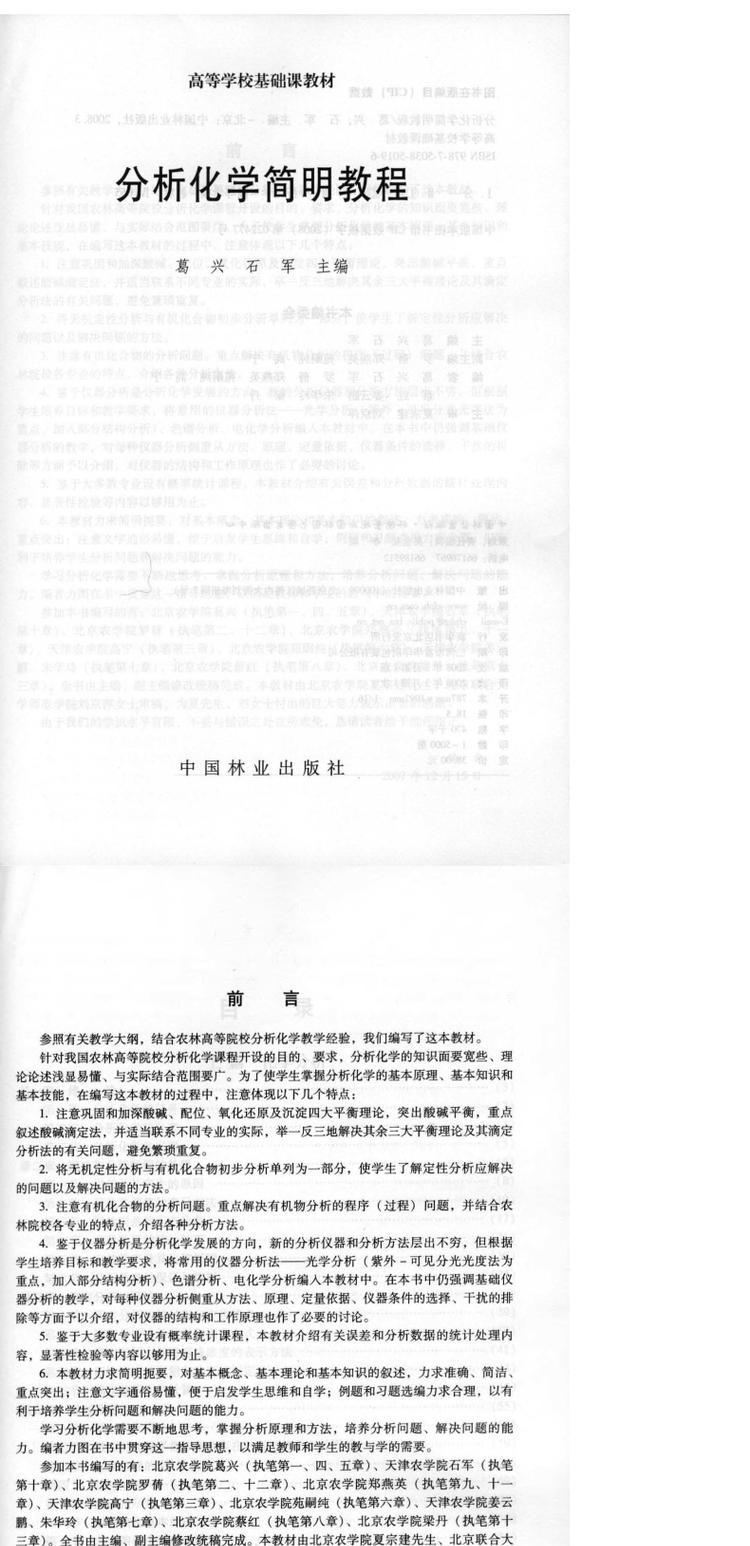 分析化学简明教程 中国林业出版社教材5019