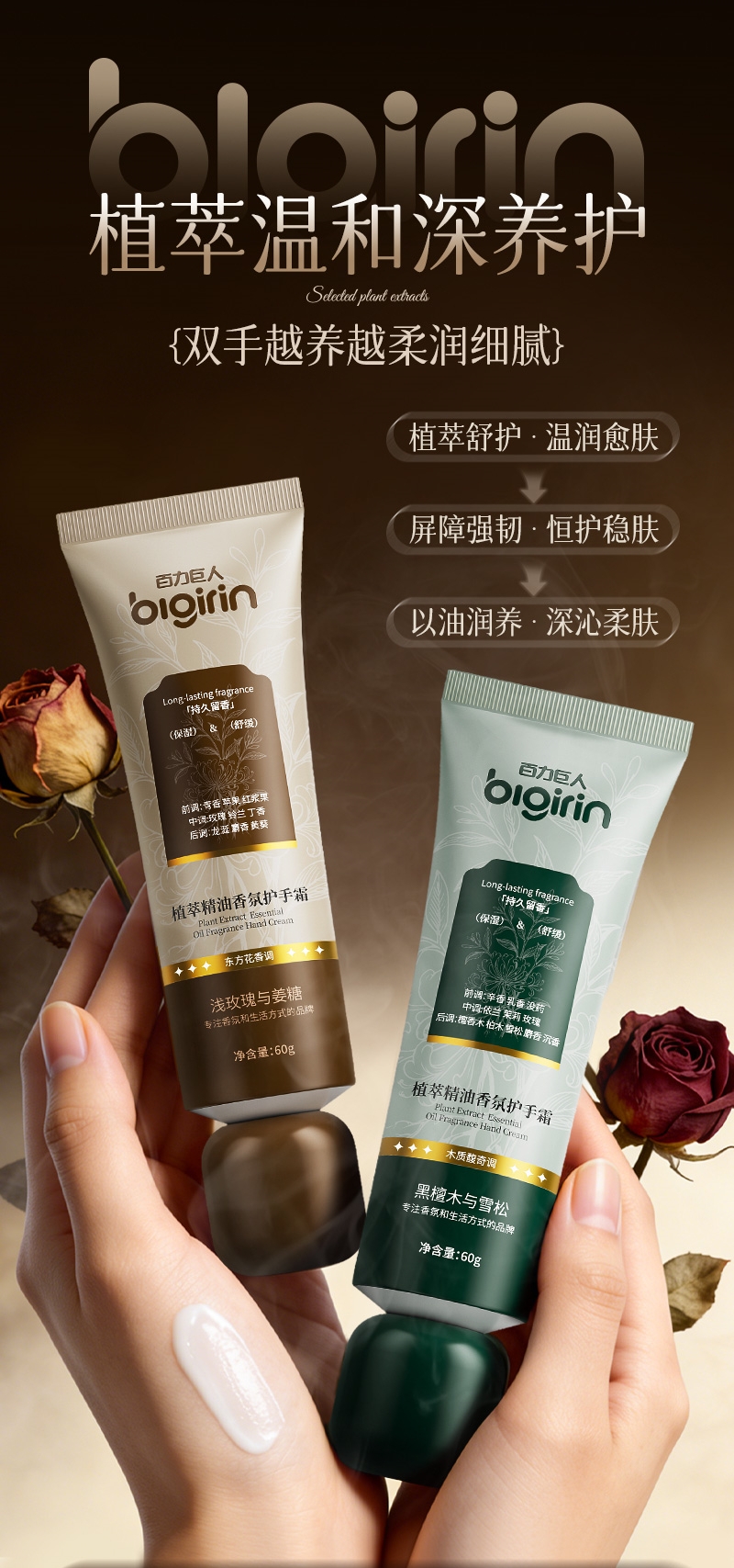 【百力巨人blgirin 植萃精油香氛护手霜】1瓶=护手霜+手膜+随身香氛 双专利配方 多种植萃精油 3款高级香氛 保湿舒缓 手嫩到摸起来像丝绸 抗氧润泽 越用双手越透亮