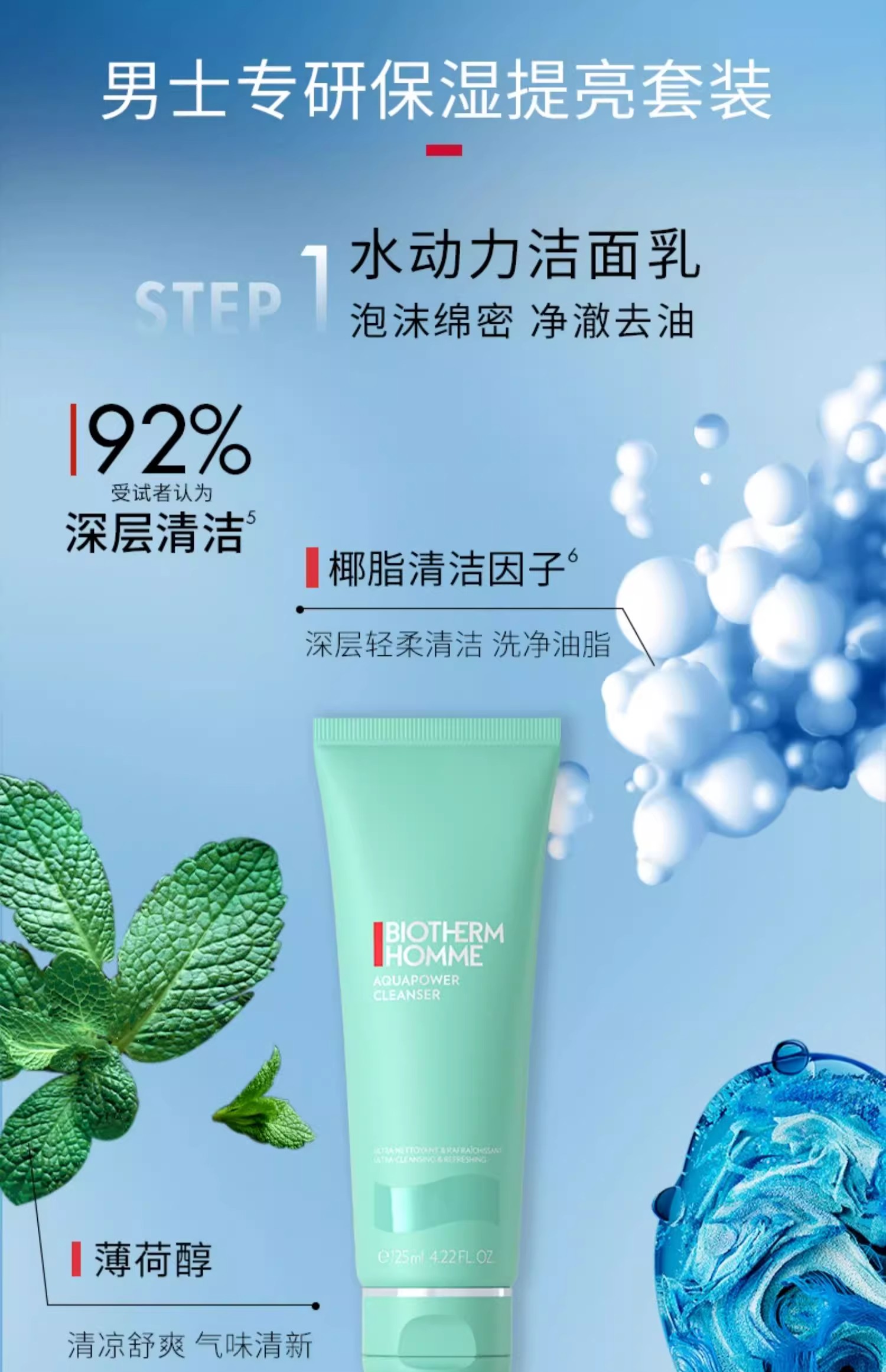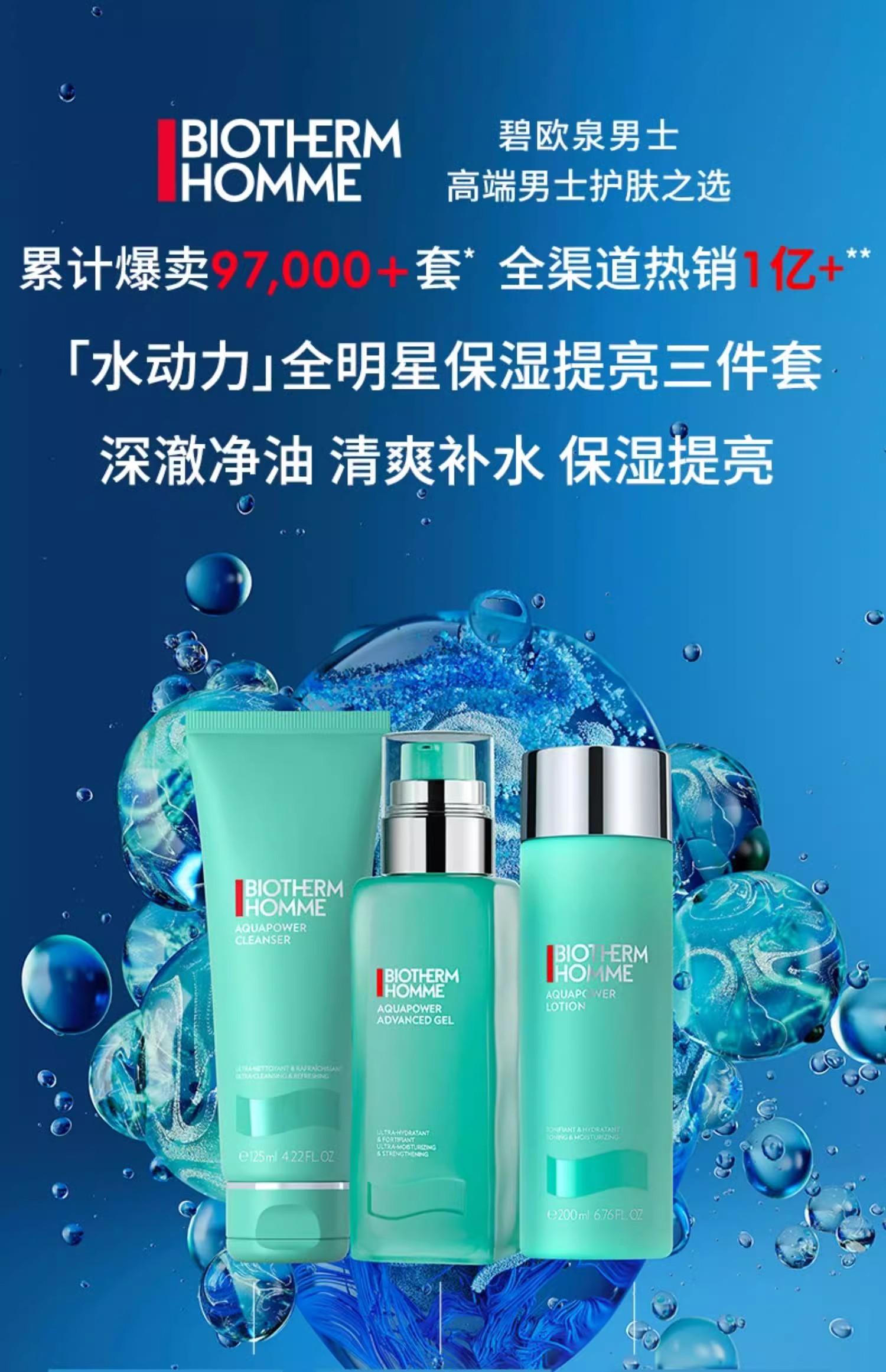 【专属】碧欧泉男士水动力三件套装(洁面125ml+水200ml+乳液100ml)