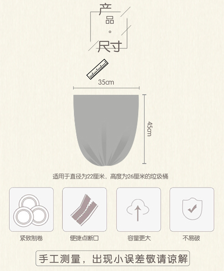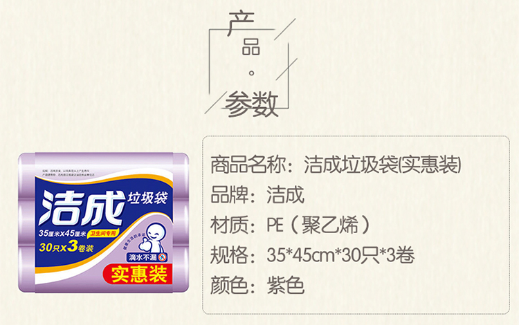 洁成小号卫生间用平口垃圾袋35*45 3卷共90只
