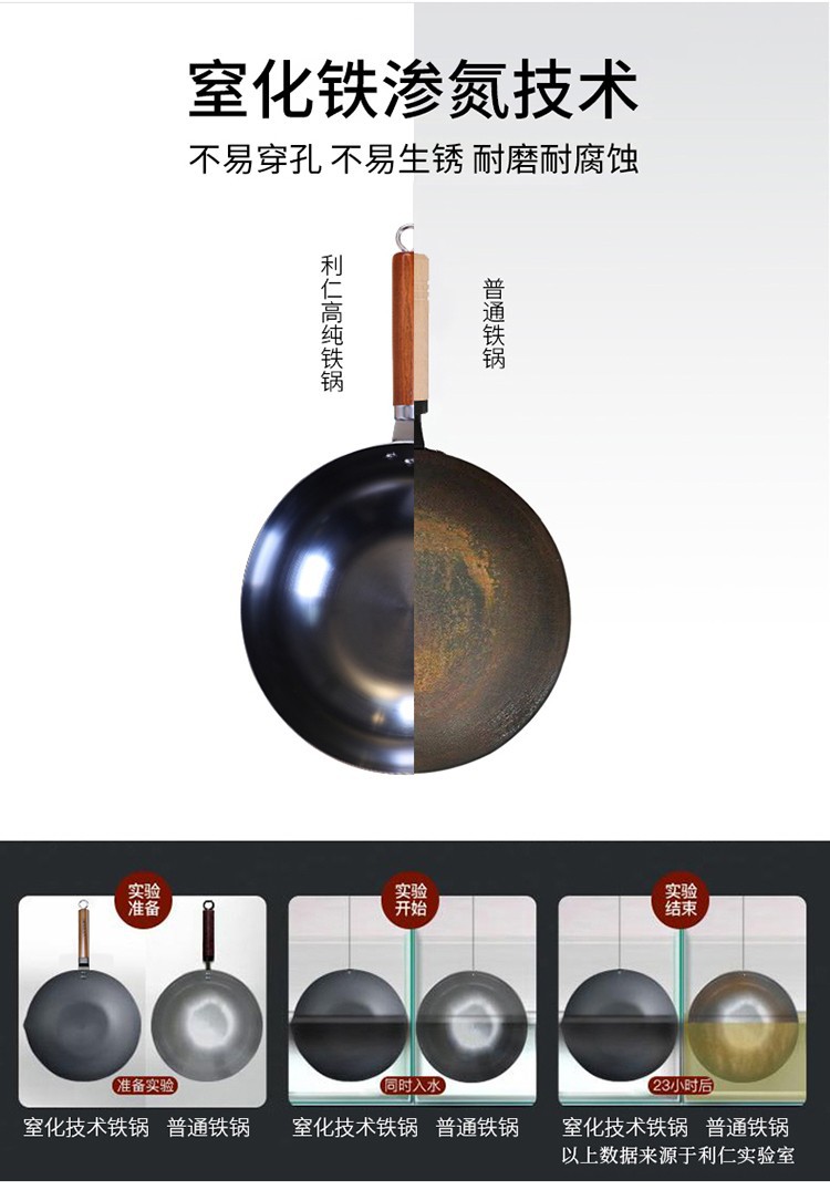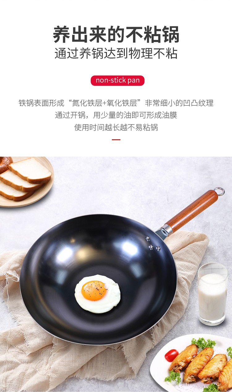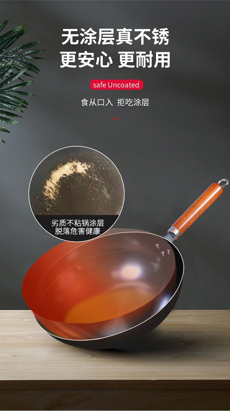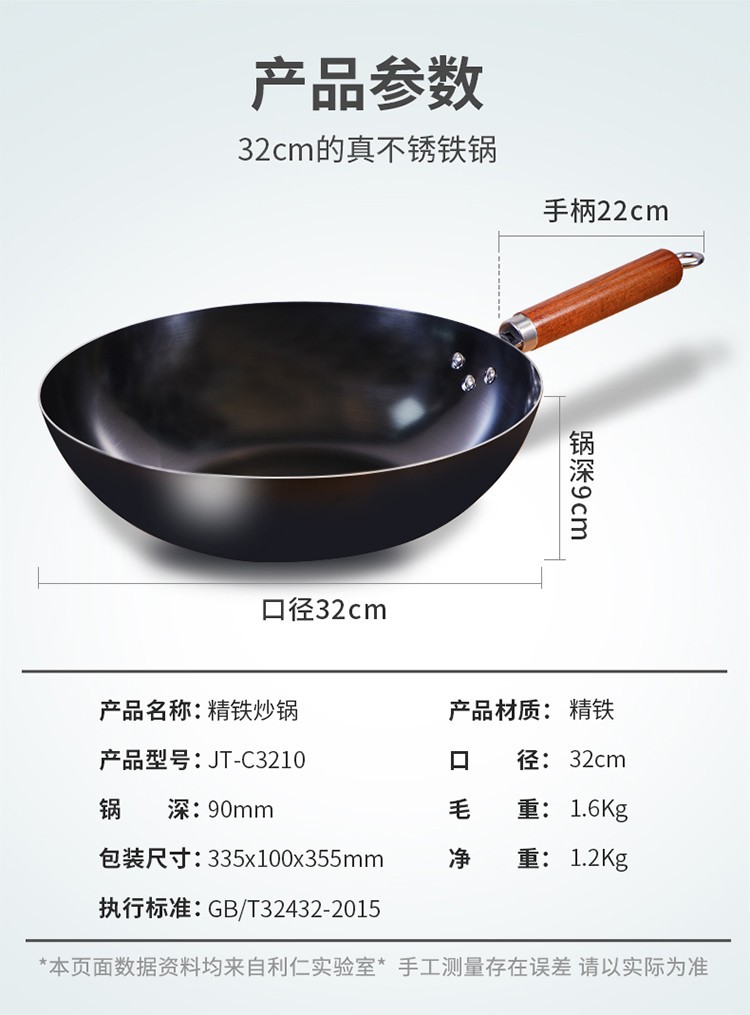利仁炒锅JT-C3210精铁锅32cm家用真不锈无涂层健康炒锅燃气明火锅