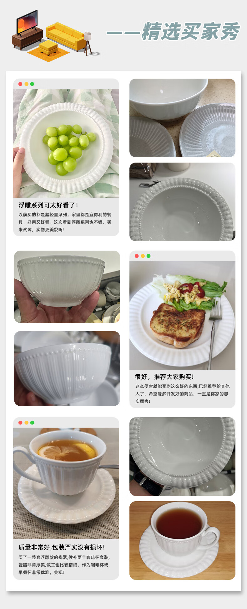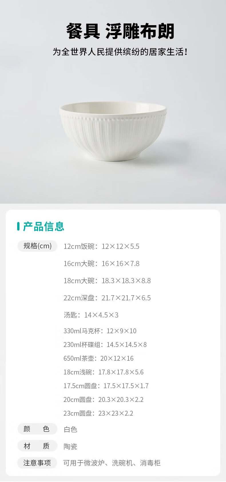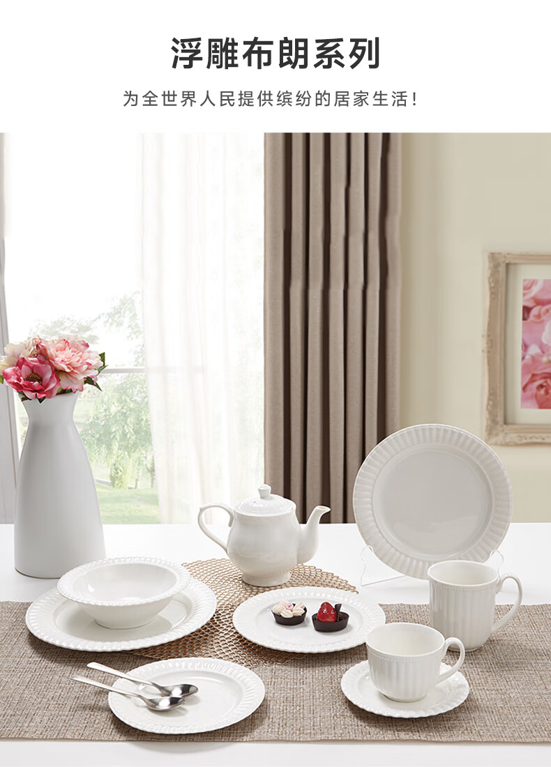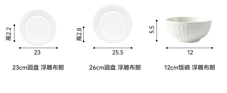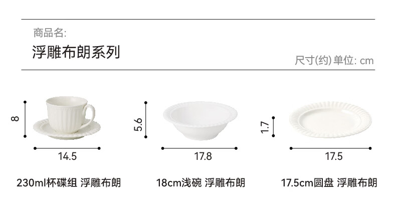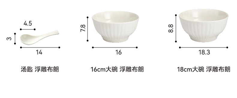 家用餐具日式陶瓷简约汤匙饭碗餐盘 浮雕布朗