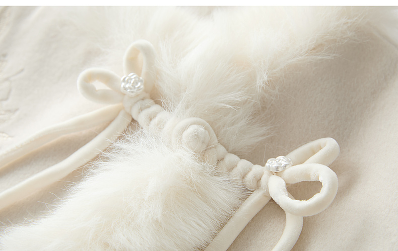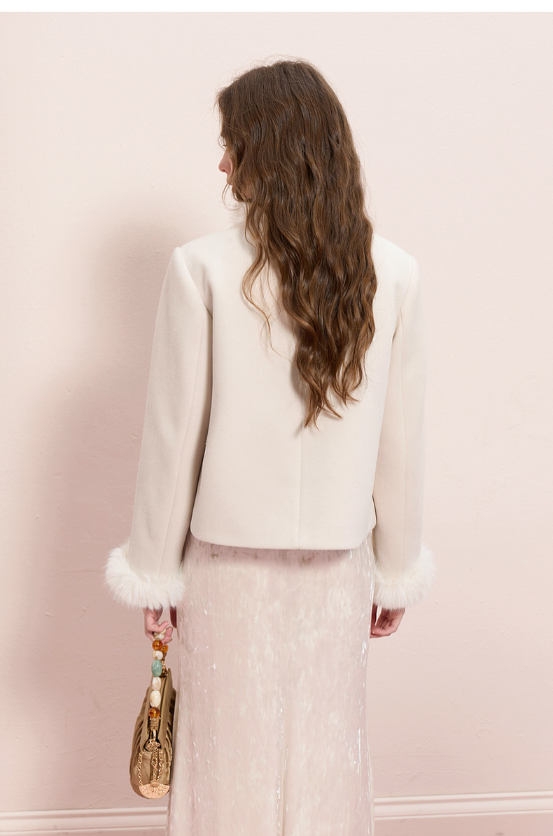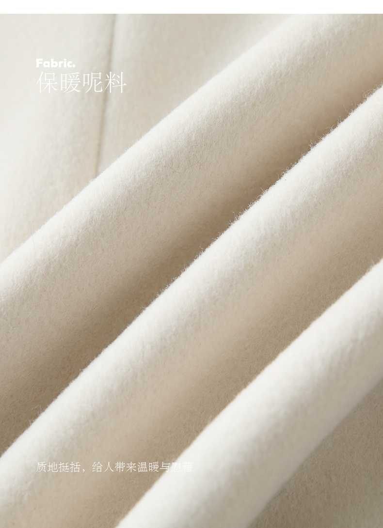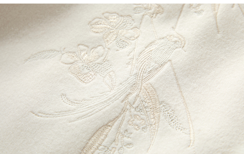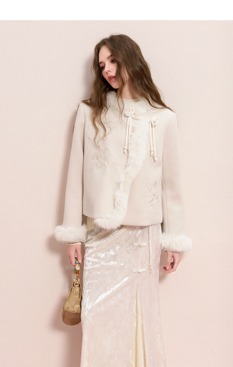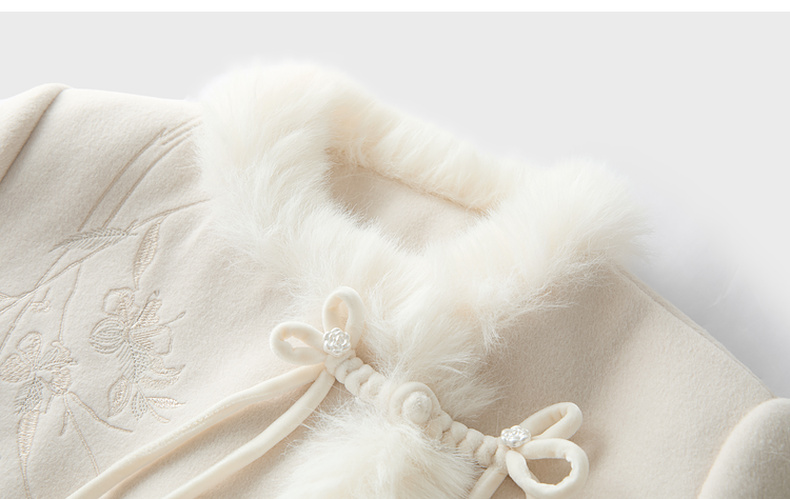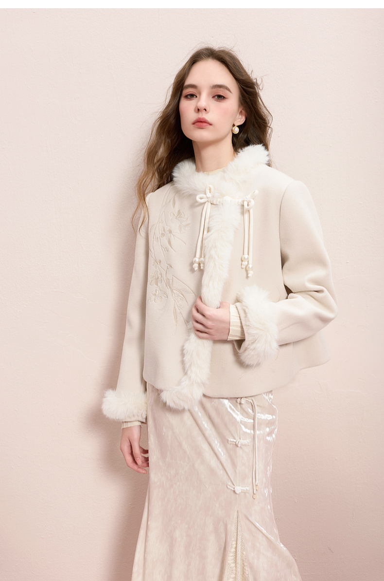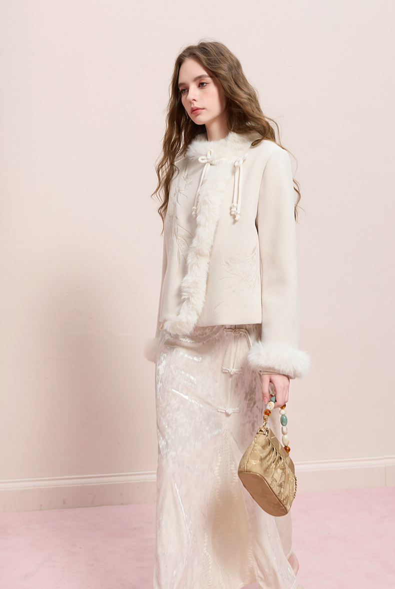三彩【霜华轻染】2025冬季新款呢大衣绣花盘扣毛呢外套宽松短款C
