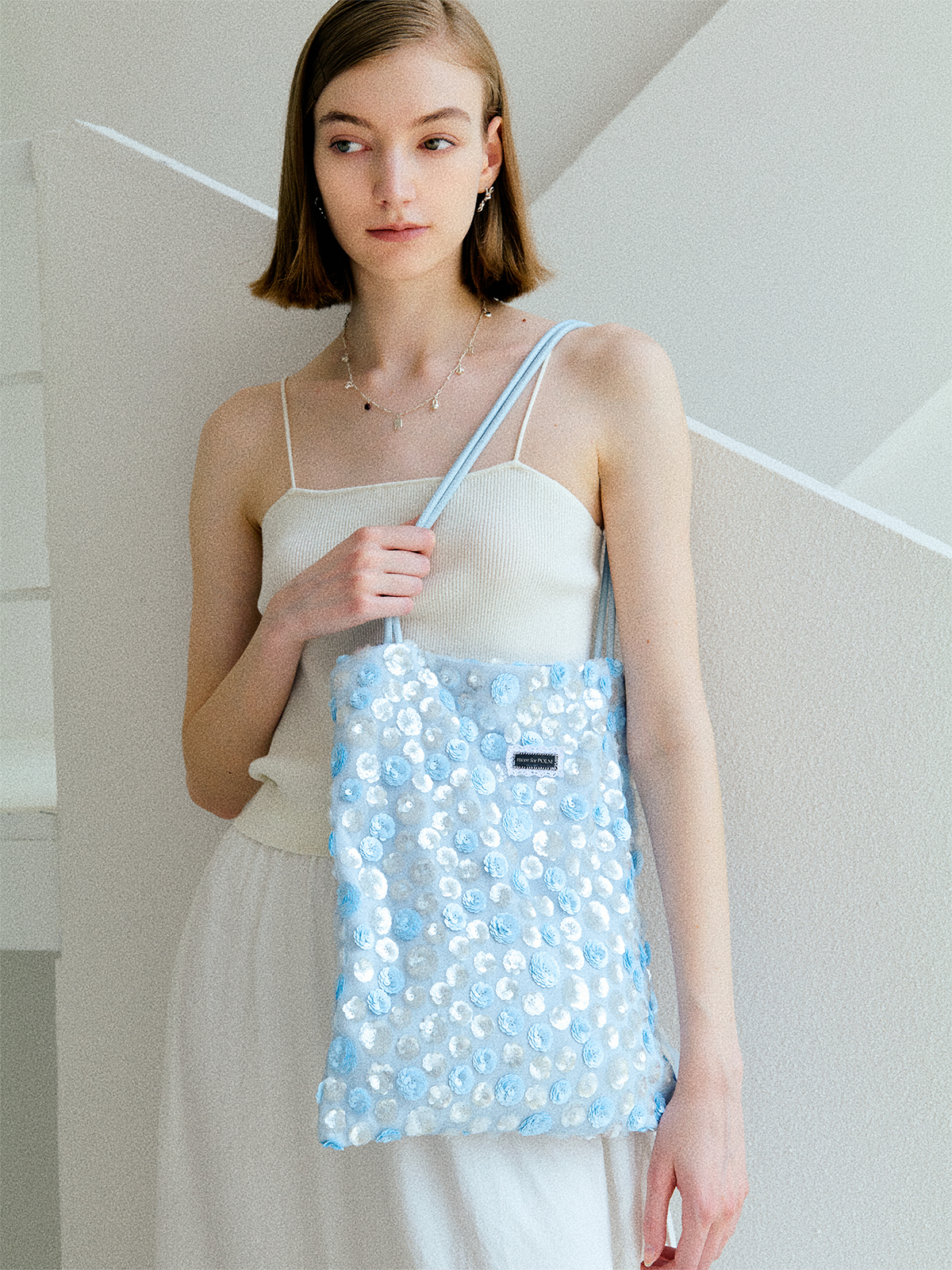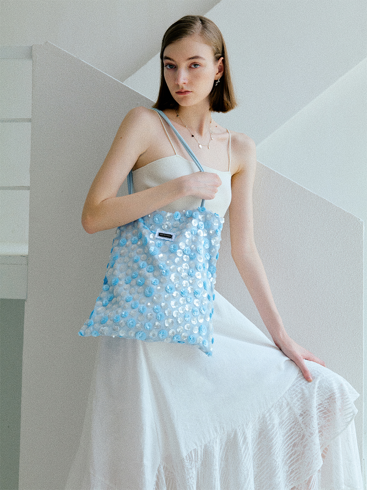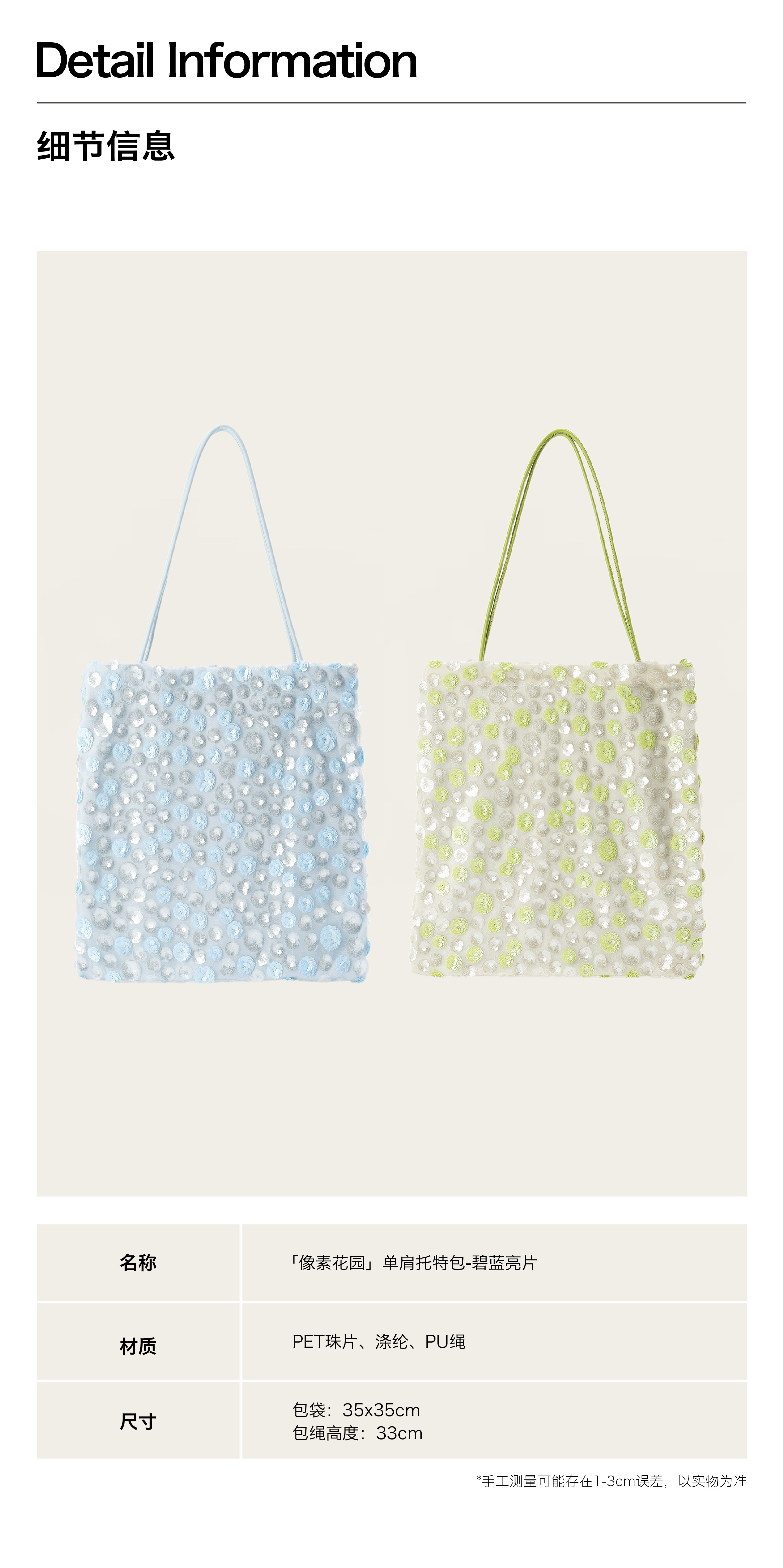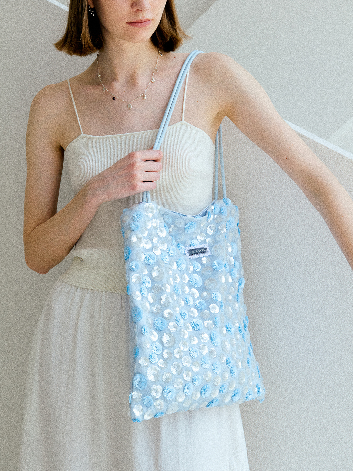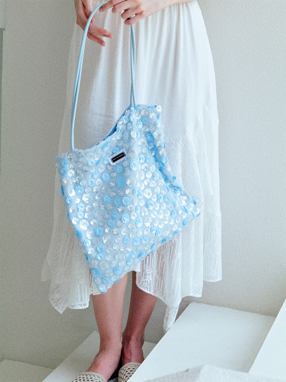 moreforPOEM 25/SS 原创设计「像素花园」珠片单肩包碧蓝亮片布袋
