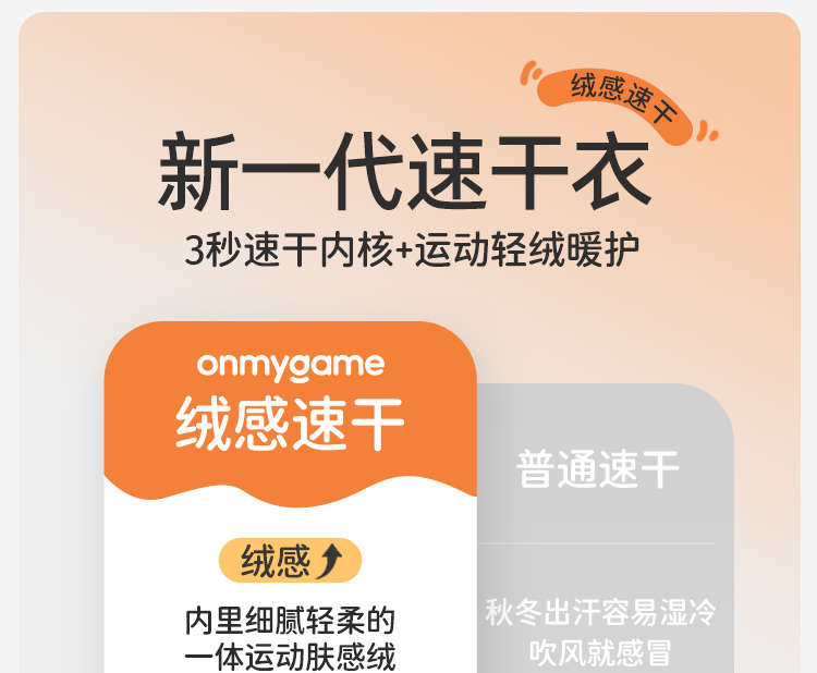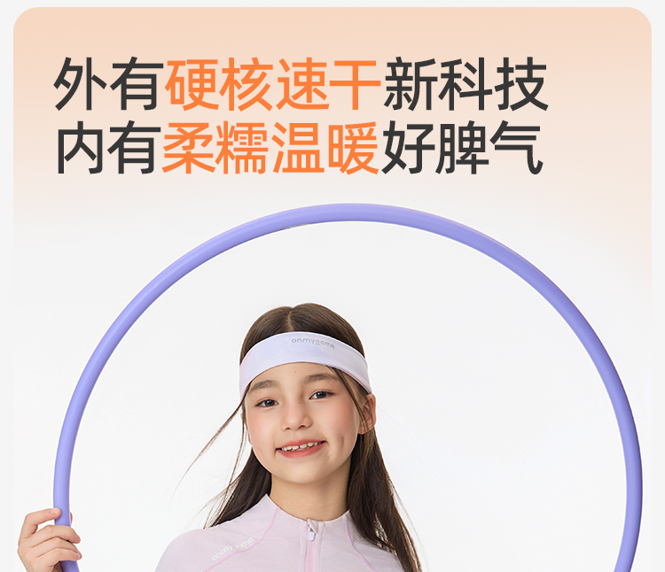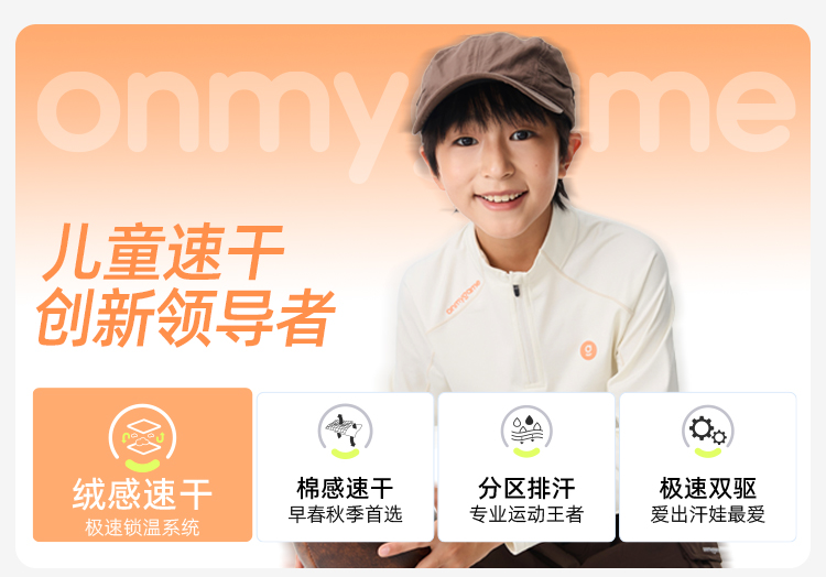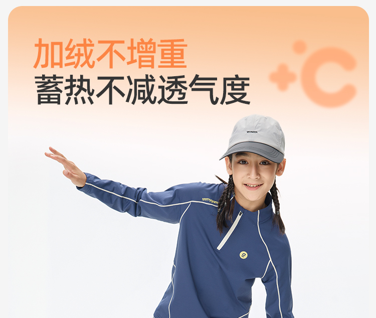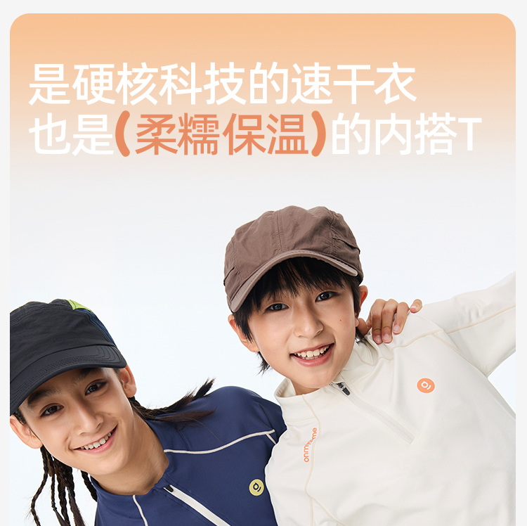 onmygame【绒感速干】儿童薄绒轻暖T恤吸湿速干运动上衣25秋季新款