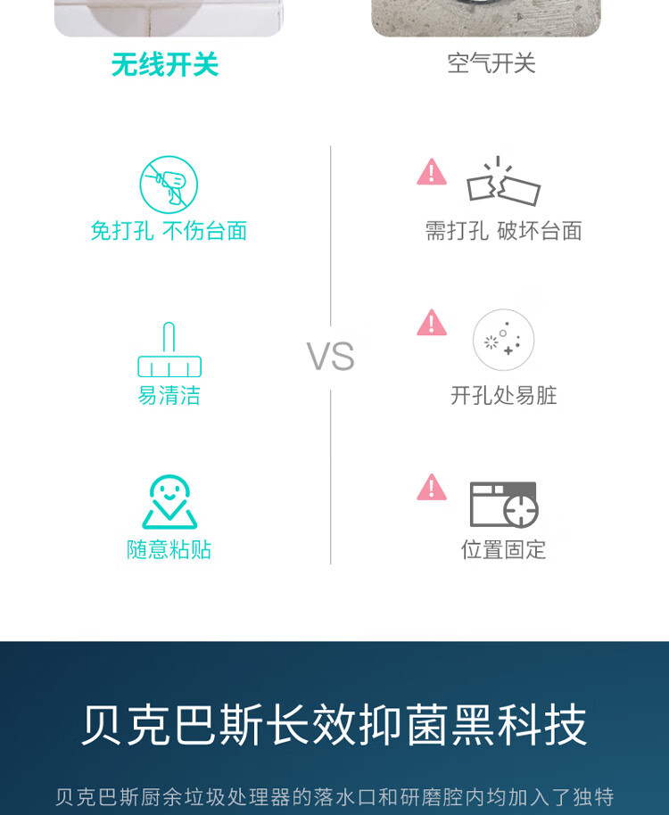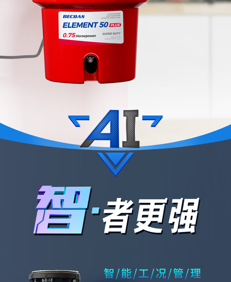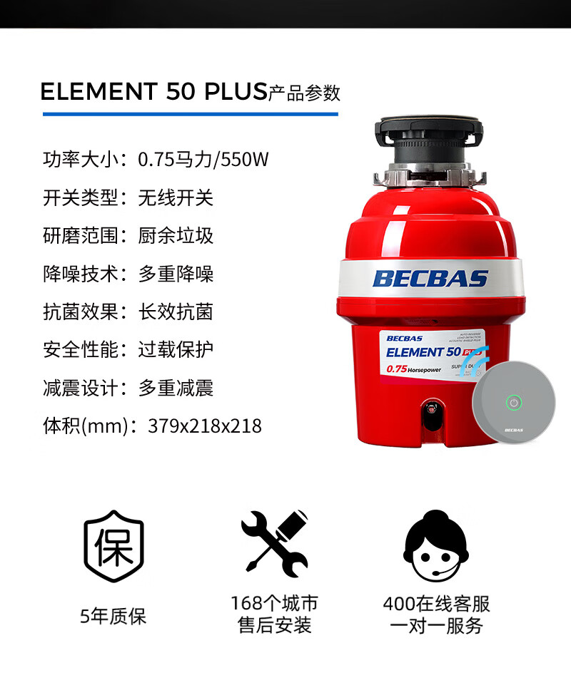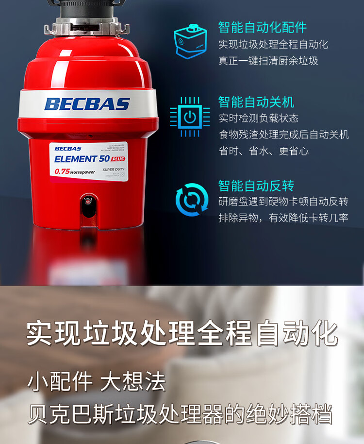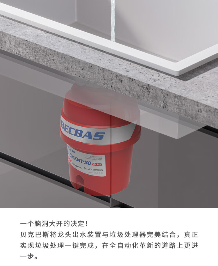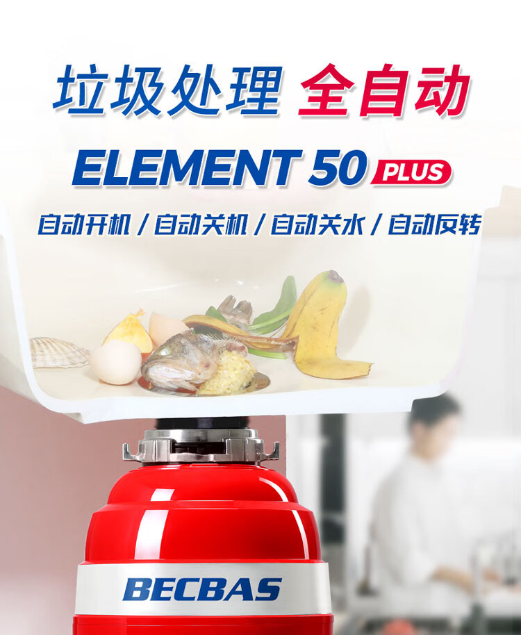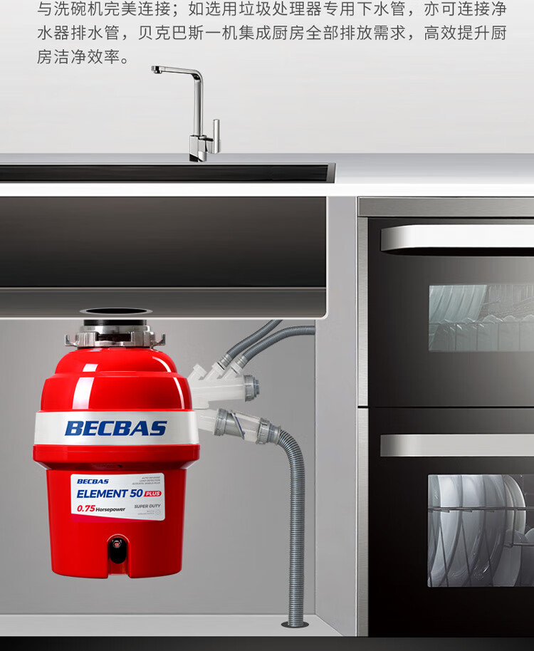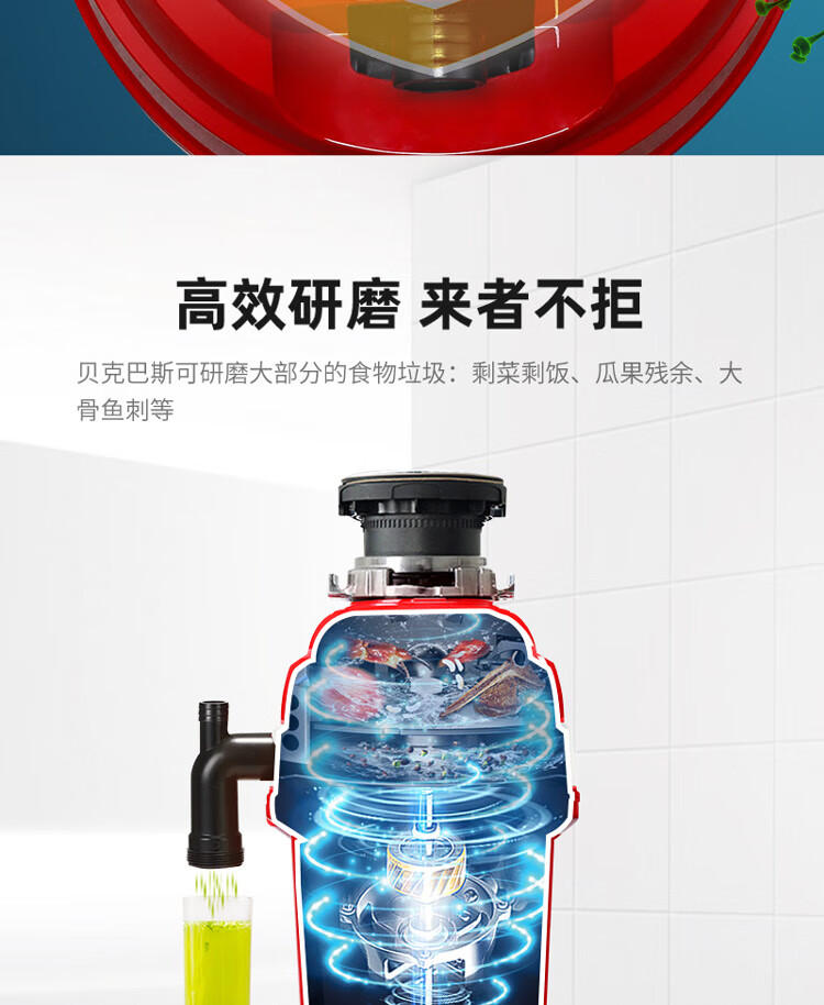 贝克巴斯/垃圾处理器/E50PLUS/红色 家用垃圾处理器 厨余粉碎机 可接洗碗机